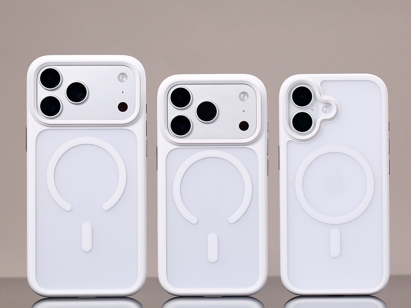 朋友们,iPhone17ProMax/17Pro/17 优限白色磁吸壳来了[嘻嘻]素雅干净的配色,手感干爽舒适。正面屏幕及摄像头区域均高出设计,防护性杠杠的。这款我们做的都是磁吸款,磁力吸附体验依旧在线。