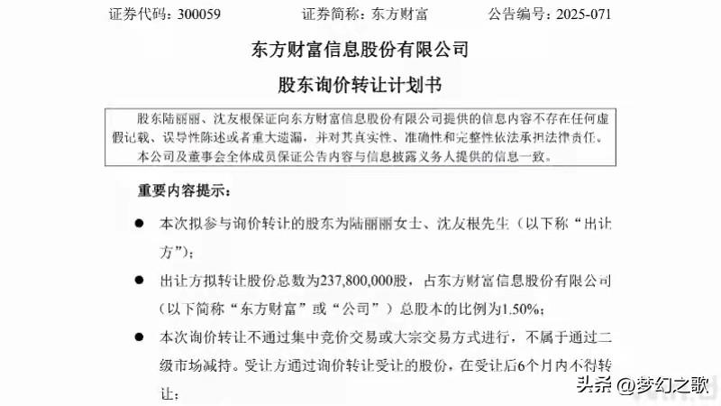 券商龙头超大利空消息,实控人重磅减持 A股昨天收盘后,东方财富发布公告,实控人累