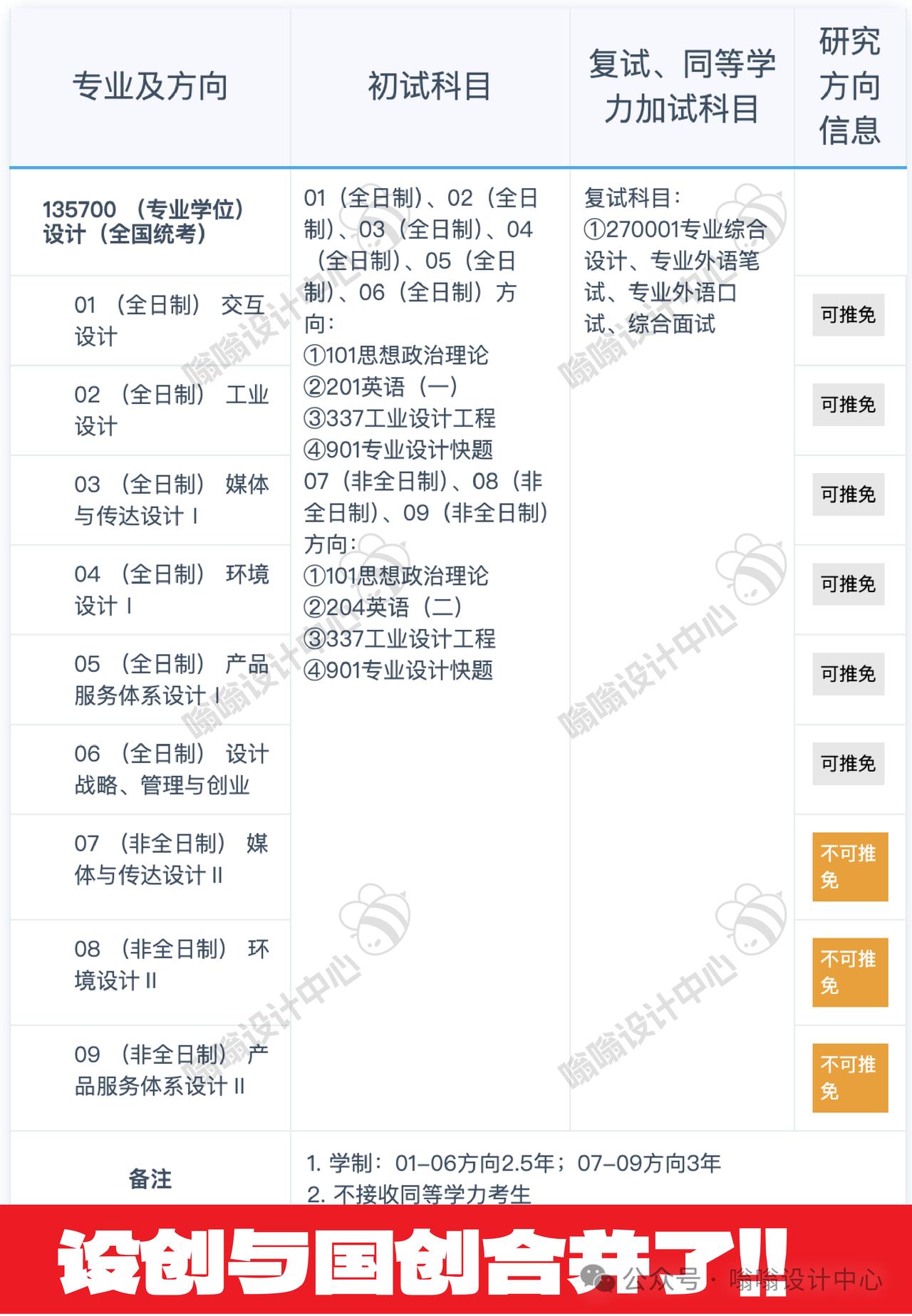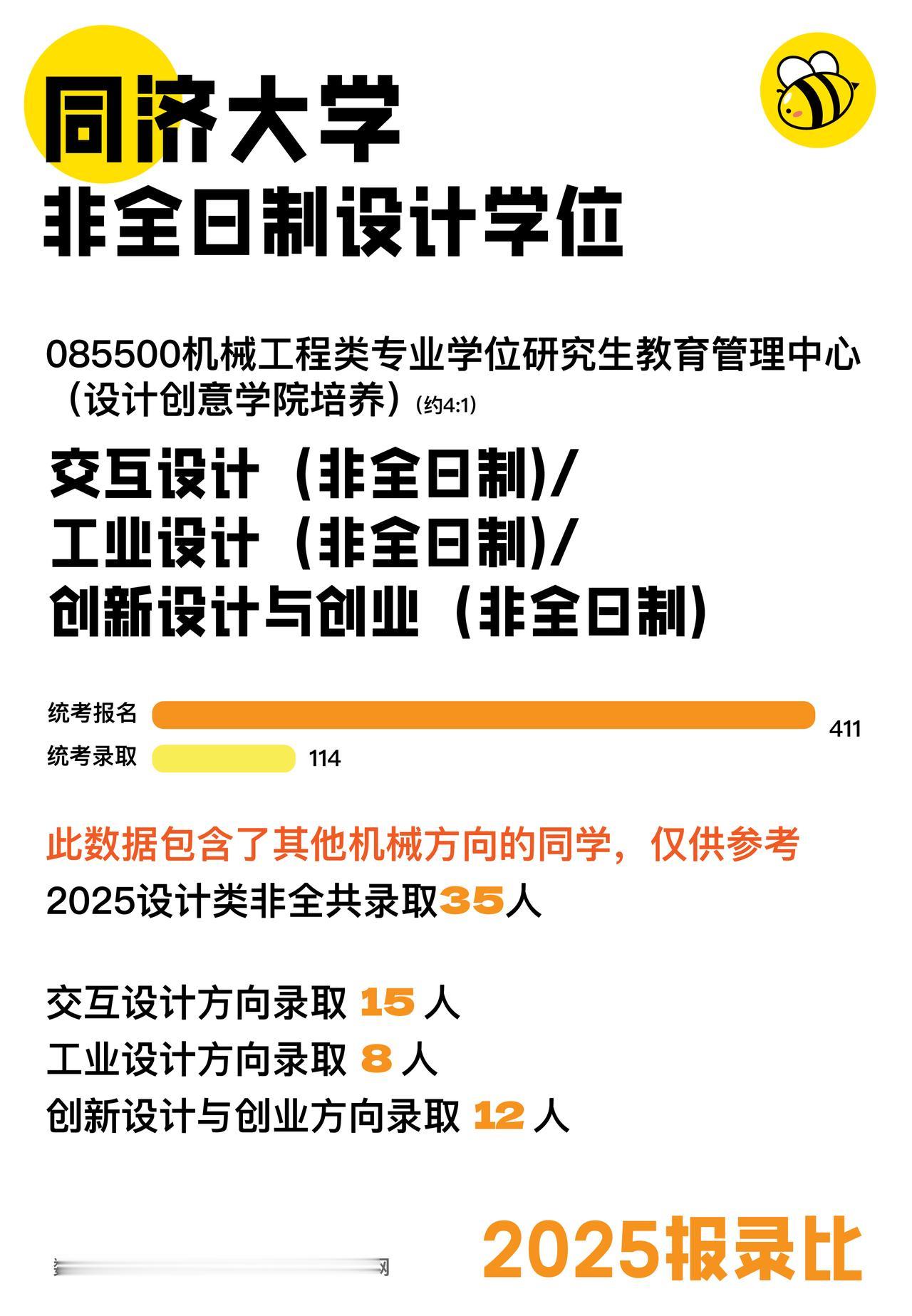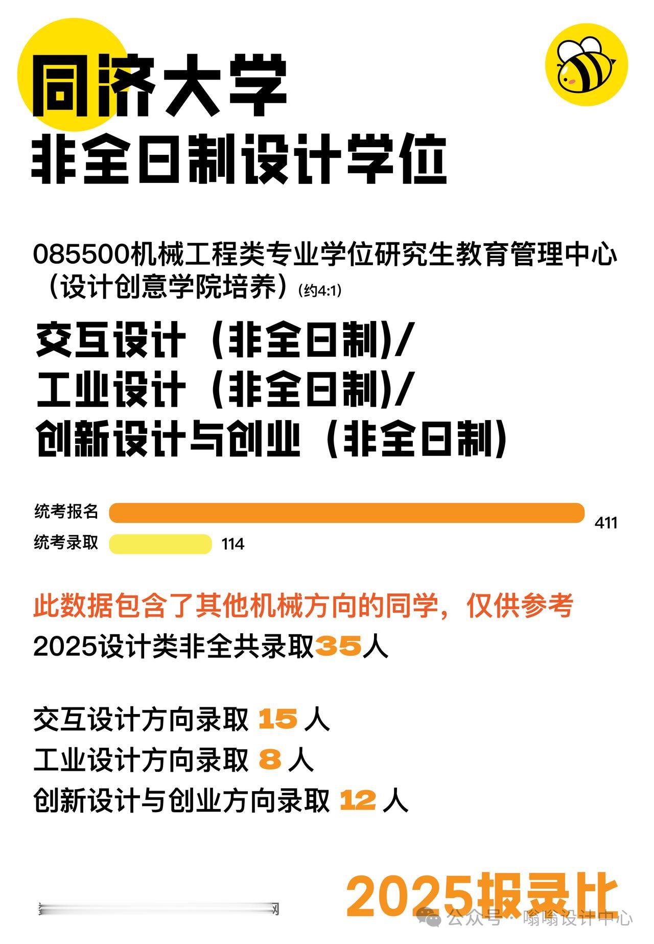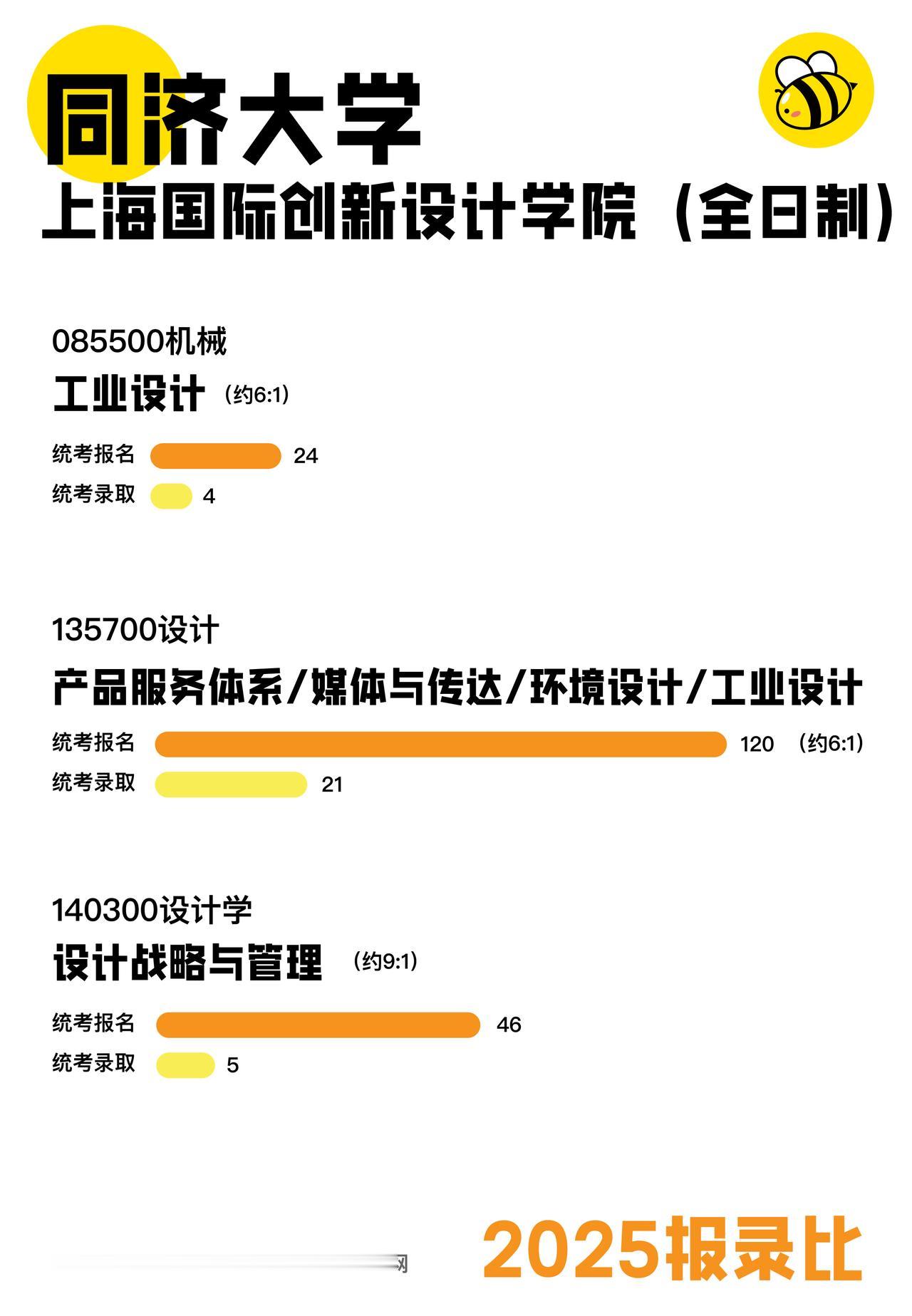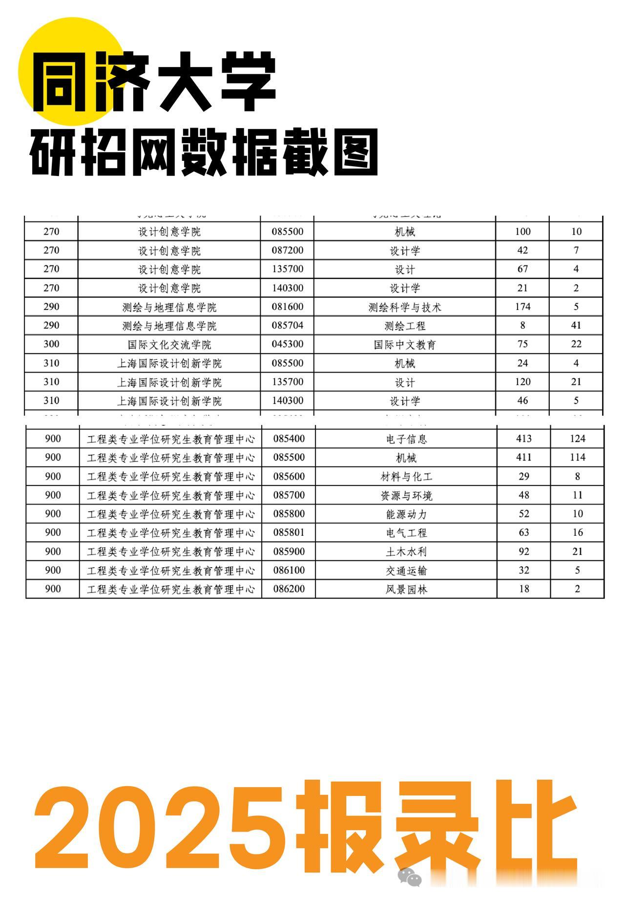 巨变!! 报录比低于10比1!同济26最新考纲及2025各专业报录比 * 数据来自同济大学研招网 🐝变化1:设创与国创合并为设计创意学院,国创没了! 🐝变化2:9个专业变化为8个专业,创新设计与创业、设计战略与管理合并为「设计战略、管理与创业」 🐝变化3:招生名额变多,预计总招收名额为:59人 (比25年招生更多,25年共招收53人) 🐝变化4:交互和工设(机械)可能划一个分数线,交互/工设/服务/战略/媒传/环境(设计)6大专业共划一个分数线 🔥更多问题,欢迎留言~我们将为你解答 喜榜!嗡嗡助力56位同学上同济!2025同济大学拟录取榜单来啦! 喜报丨霸榜同济!24嗡嗡助力56位同学上同济!包揽设创/国创/艺传/非全第一
