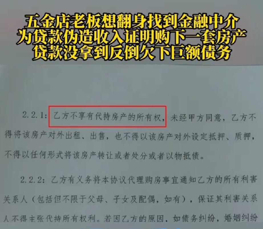 重庆,五金店老板生意连续亏损,为了东山再起,他找到一名金融中介帮忙贷款。因为他没户口没社保也没房子,中介对他进行了仔细“包装”,给他伪造了一份月入2.9万的收入证明,并给他借款80多万,买了套365万的房子,让他顺利贷款270多万。万万没想到,商业贷还没贷下来,男子就收到了法院传票,这时他才意识到,自己陷入了一个超级大骗局。 彭先生在五金生意场上打拼多年,开了几家店,但最近几年行情不好,生意连续亏损,不仅把积蓄赔了个精光,连名下好不容易攒下的两套房子也全都搭了进去。 那段时间,他天天愁眉不展,但他固执地认为,自己只是运气不好,只要再有一笔启动资金,就一定能抓住机会东山再起。 去年四月,他翻通讯录时看到了金融中介杨某的名字,他想起杨某以前吃饭时吹嘘过,说没有他办不下来的贷款。 走投无路的彭先生像是抓住了救命稻草,立刻拨通了电话,杨某爽快答应,可以帮他从银行申请低息的经营贷。 银行发放经营贷,首要条件就是贷款人名下要有房产作为资质凭证。 可彭先生现在是个典型的“三无人员”:没有重庆户口、没有本地社保,最关键的是,名下连一套属于自己的房子都没有了。 杨某表示,他们有专业包装办法,只要彭先生配合就行。 杨某所谓的“包装”第一步,是找来了一个名叫汪某的人。汪某在渝北区有套洋房,房龄已经19年,而且没有电梯。 杨某安排彭先生与汪某签订了一份购房合同,合同上约定的总价高达365万元。 听到这个数字,彭先生心里直打鼓,别说365万,我现在连35万都拿不出来。 但杨某表示,首付款88万他借给彭先生,而且后续每个月的银行按揭贷款,他也完全不用操心,只是挂个名,走个流程而已。 被翻盘的渴望冲昏了头脑,彭先生虽然觉得有点不对劲,但还是咬牙答应了。 接下来是申请银行按揭贷款,以彭先生的实际状况,提供真实的收入证明根本不可能通过审批。 这时,杨某又出手了,他给彭先生办了一张收入证明,职位是某家公司产品经理,月收入2万9千元。 杨某排着胸脯表示,银行里头他有关系,万无一失。 在杨某的一手安排下,彭先生带着所有材料,来到了指定的银行网点,果然,顺利贷到272万元,直接打入了房东汪某的账户。 看到贷款成功的短信,彭先生长舒一口气,房子的事情搞定了,接下来就等那笔救命的经营贷了。 然而,他左等右等,之前承诺的经营贷却迟迟没有动静,他多次催促杨某,对方总是以各种借口敷衍。 万万没想到,几个月后,杨某的电话彻底打不通了,还没等他从杨某失联的震惊中缓过神来,法院的传票却送到了他手上。 原来,杨某在替他支付了短短几个月的月供后,就停止了还款,银行在多次催收无果后,直接向法院提起了诉讼。 法院明确表示,这套房子很快会被司法拍卖,即便房子卖掉,他还欠银行近一百万,而且,会被列为失信被执行人。 彭先生准备把房子卖掉还债,这时他才想起,在当初签完购房合同后,杨某就让他签过一份《房屋代持协议》。 协议白纸黑字写明,彭先生只是这套房子的名义持有者,房子的出租、出售、抵押等一切处置权,他都无权过问。 换句话说,房子虽然在他名下,但他压根动不了。 最要命的是,他一调查才发现,这套房子目前市场价格最多也就230万元左右,这个价格不仅远低于他当初365万的购房价,甚至比他从银行贷出来的272万还要低四十多万。 他这才明白,自己被坑惨了。 愤怒的彭先生去找银行讨要说法,发放贷款时,难道不核实收入证明的真伪,不评估房子的真实价值吗? 但银行方面的工作人员一口咬定,他们的贷款审批流程是符合相关规定,其他的不方便透露。 至此,彭先生彻底明白了,自己陷入了高评高贷的圈套,但为时已晚。 不仅没有拿到一分钱救命钱,反而背上了数百万元的巨额债务,房子将被拍卖,还要承担法律责任。 从法律角度来看,彭先生与杨某的行为可能构成骗取贷款罪。 根据《刑法》第175条之一规定:以欺骗手段取得银行或者其他金融机构贷款,给银行或者其他金融机构造成重大损失的,构成骗取贷款罪。 彭先生在杨某的安排下,签订虚假的购房合同,虚构房屋交易价格,同时提供虚假的收入证明,这些行为属于欺骗手段,符合骗取贷款罪的立案标准。 此外,银行可能存在一定过错,银行在贷款审批过程中,应当对借款人的资质、收入证明、抵押物价值等进行严格审查。 如果银行没有尽到合理的审查义务,导致不符合条件的彭先生获得贷款,银行也需要承担相应的责任。 彭先生应尽快收集相关证据,向公安机关报案,追究杨某等人的刑事责任,同时也可以通过民事诉讼途径,维护自己的合法权益。 信源:天天630新闻 9月30日
