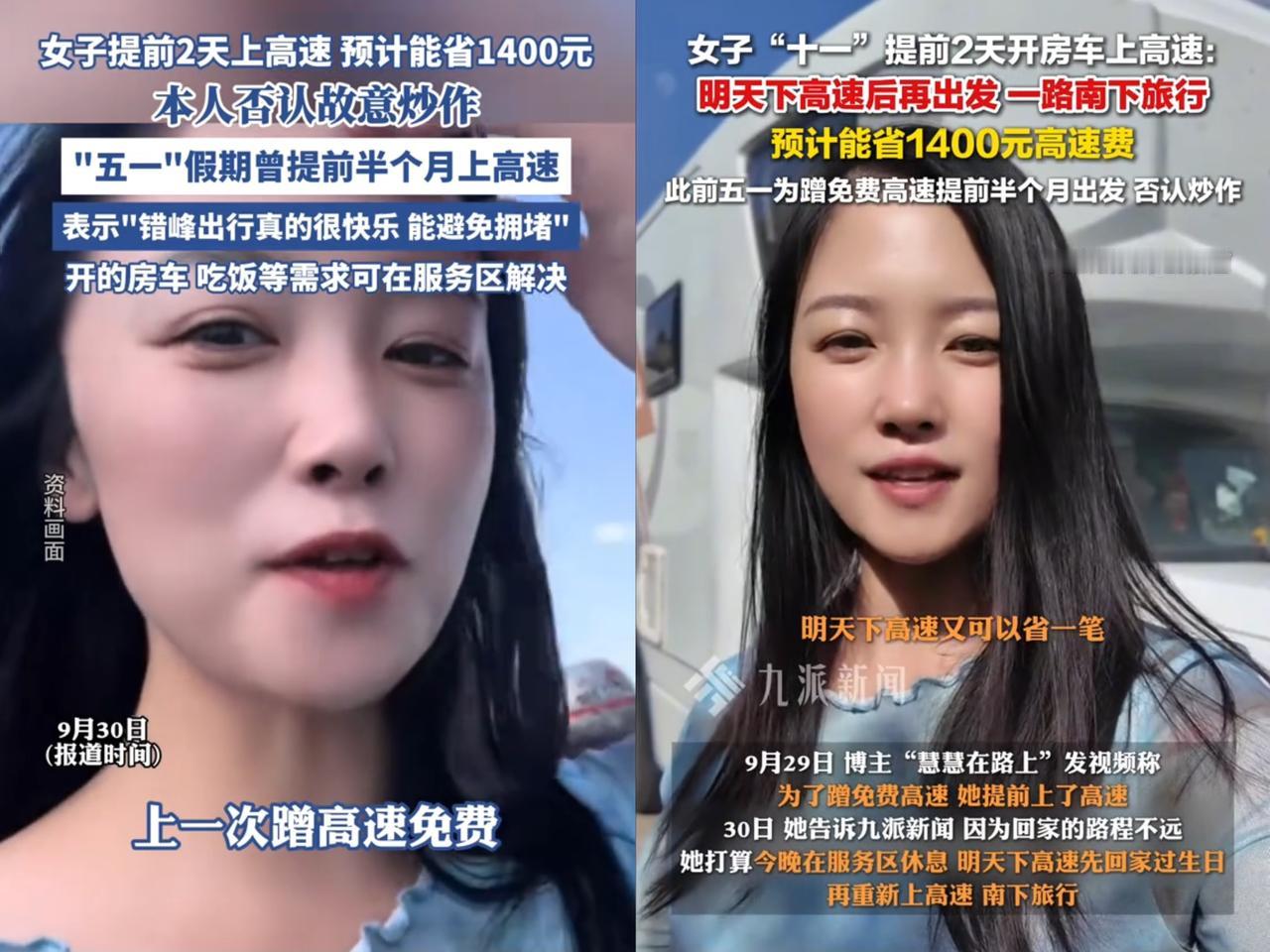 “这人也太聪明了吧”! 一女子为省下1400元高速费, 十一前 提前两天就上了