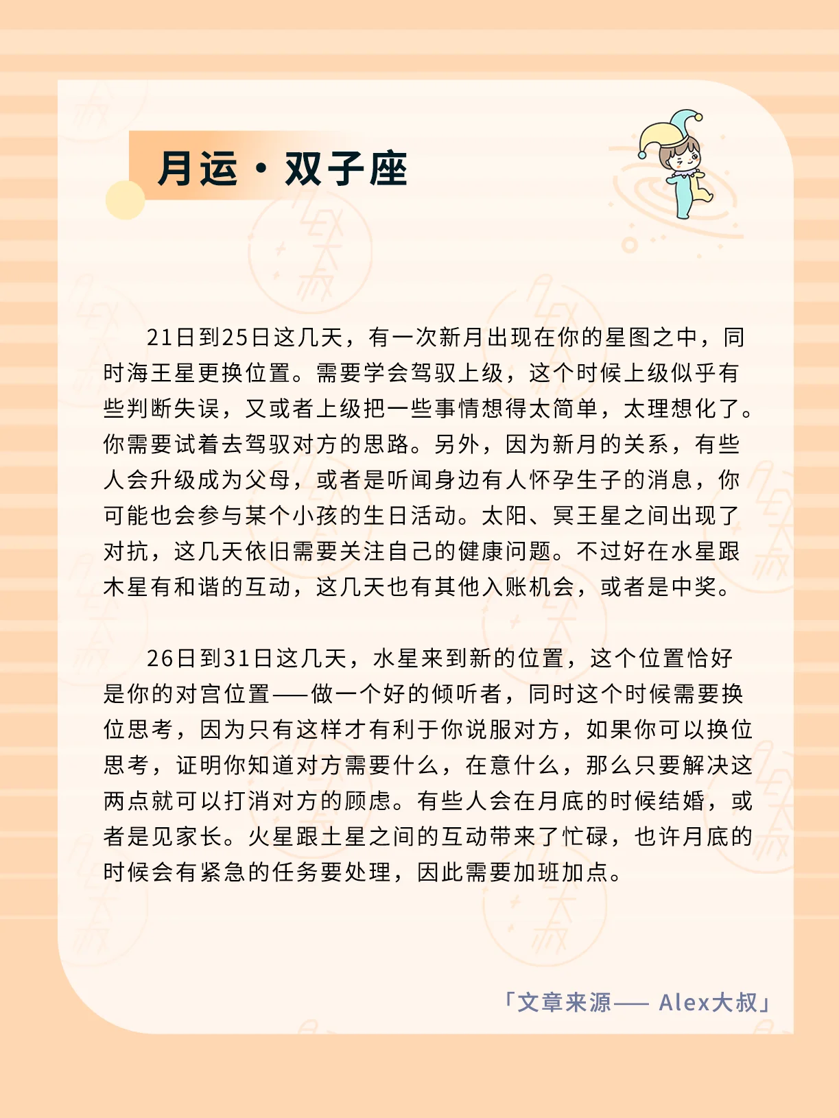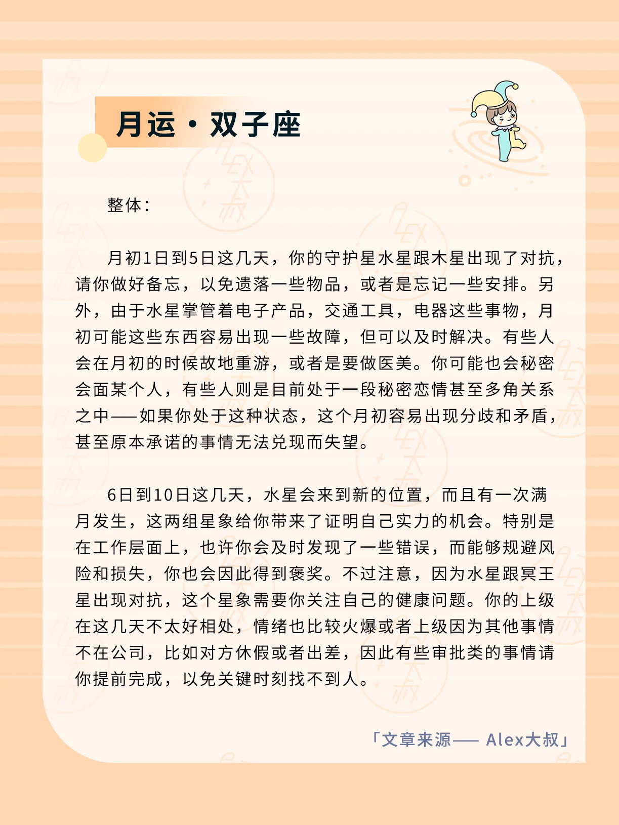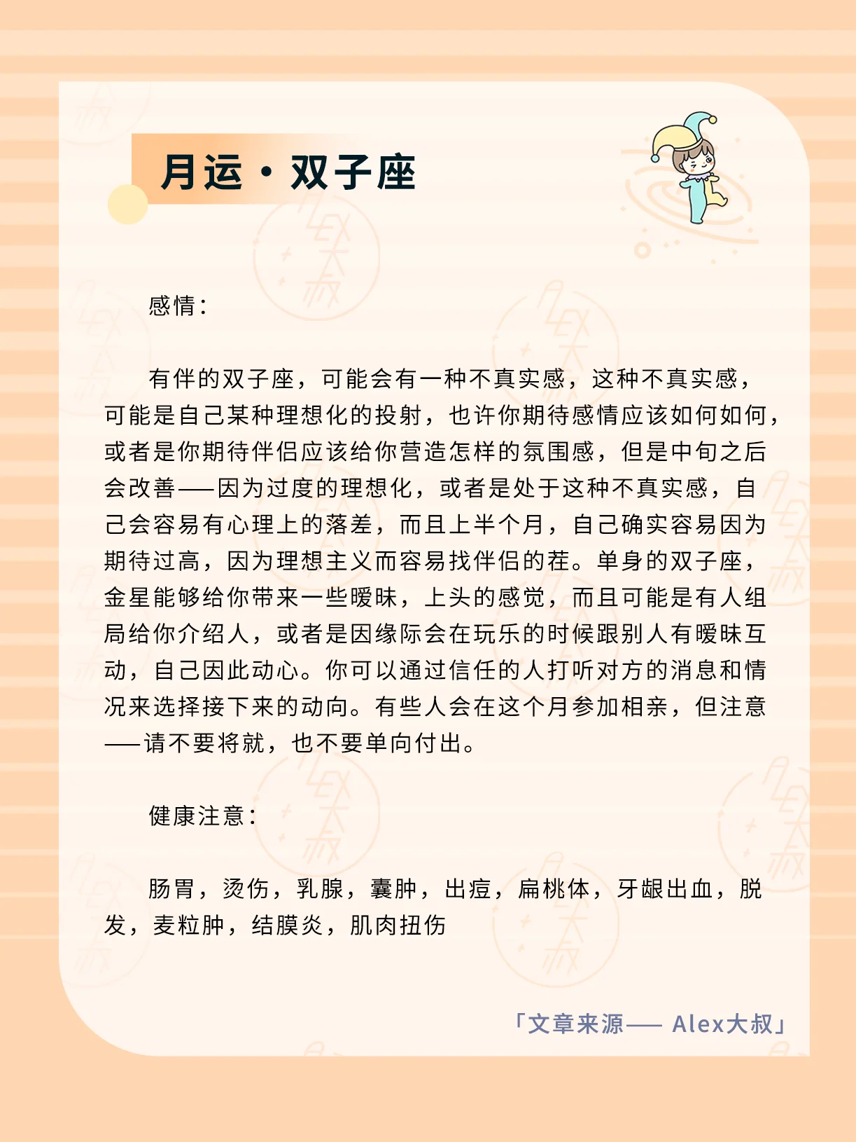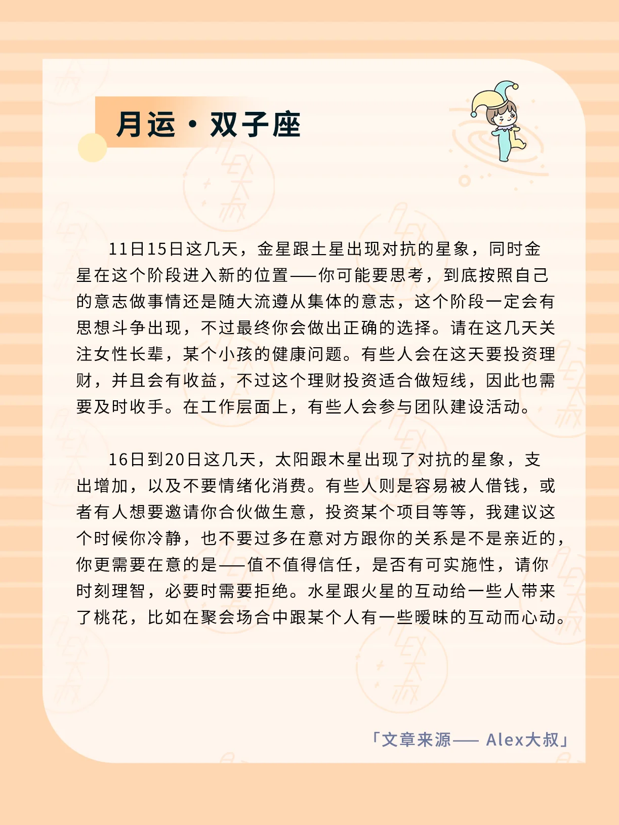 ALEX大叔 星座运势 我的星座 双子座运势 巨蟹座运势
