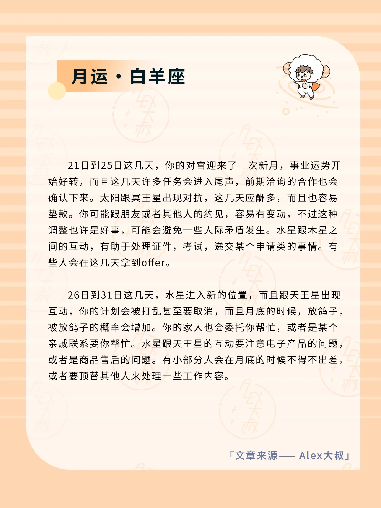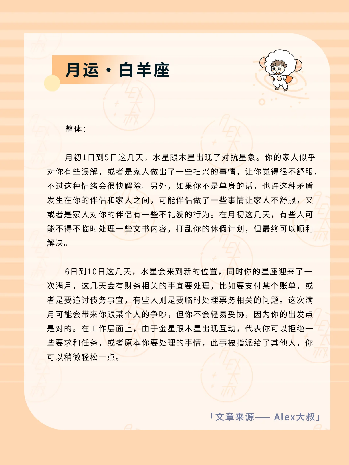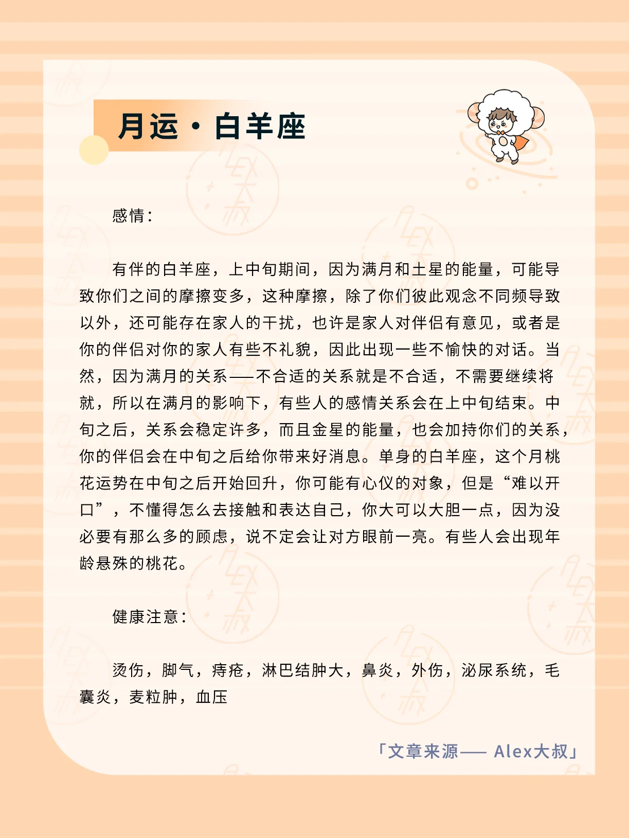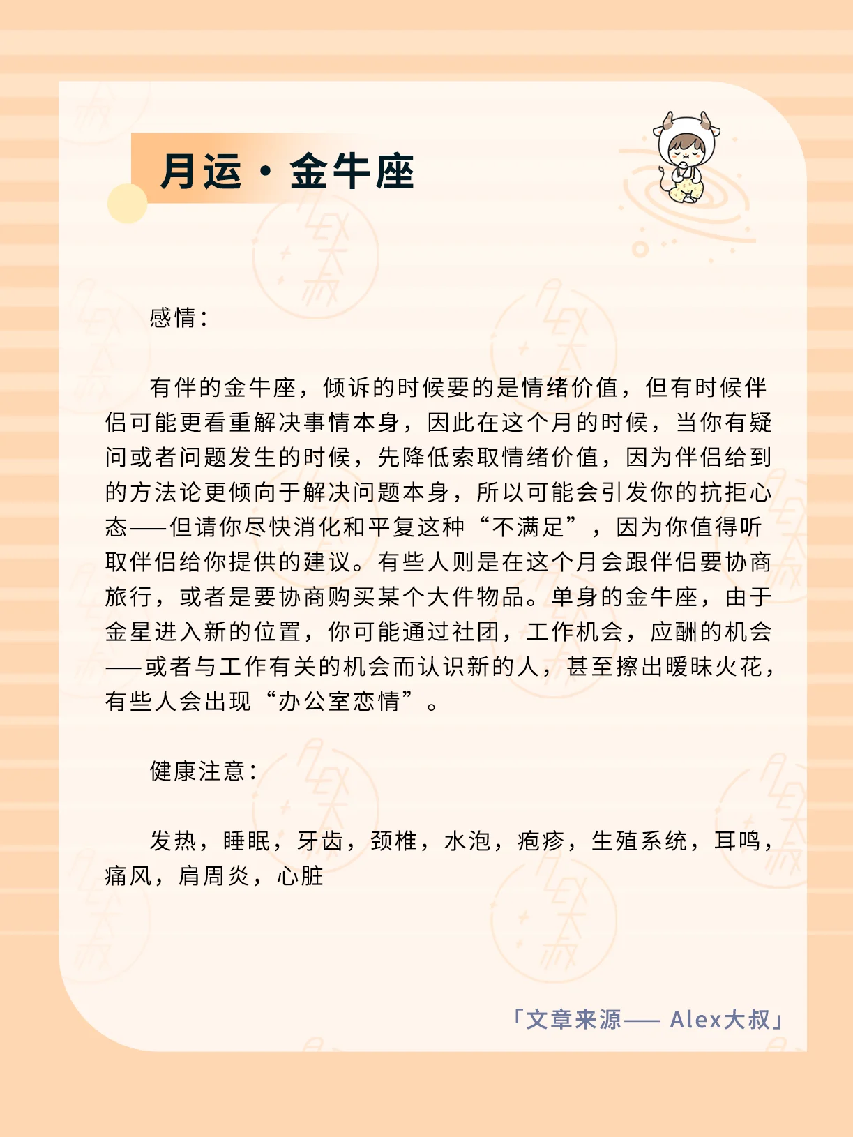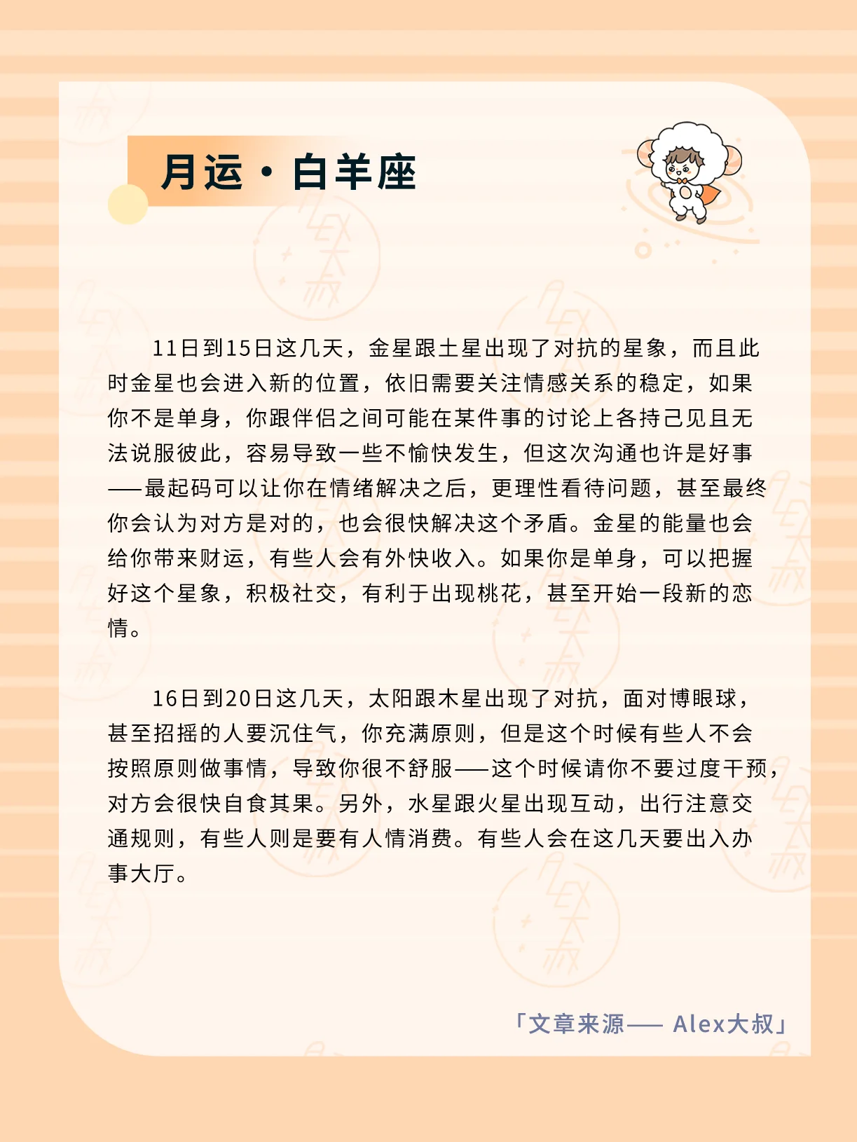ALEX大叔 星座运势 我的星座 白羊座运势 金牛座运势