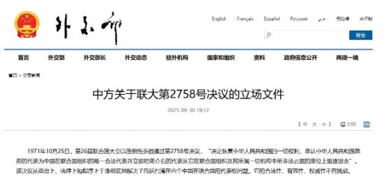 终于等到这天!外交部当着全球发布重大声明,台当局哀嚎一片:这下真的完了 国庆节前一天,外交部官网面向全球发表的关于联大第2758号决议的立场文件,之所以能在台岛内部激起“惊涛骇浪”。 让台当局哀嚎一片,根本原因在于这份文件把“台湾是中国一部分”的法理根基、国际共识讲得明明白白,彻底堵死了台当局搞“台独”的所有歪路。 外交部直接在官网上对着全球发布了关于联大第 2758 号决议的立场文件,这事儿一出来,台岛内部直接炸了锅,台当局更是一片哀嚎,嘴里不停念叨 “这下真的完了”。 要我说,他们会这么慌,根本不是没原因的 —— 这份文件把台湾是中国一部分这点说得明明白白,不管是从法律上讲的根基,还是全世界大多数国家都认的共识,都掰碎了讲透了,等于把台当局这些年想搞 “台独” 的那些歪门邪道,全给堵死了。 可能有人还不太清楚联大第 2758 号决议是啥,这里得先捋捋这事儿的来龙去脉。 那是 1971 年的时候,联合国开大会投票通过了这个决议,当时的结果可以说是压倒性的 —— 赞成票远远超过反对票。 这个决议最核心的内容就两条:一是承认中华人民共和国政府是代表全中国的唯一合法政府;二是把当时台湾当局派驻在联合国的那些人,彻底赶出了联合国体系。 从那天起,在国际社会上,“台湾是中国一部分” 就不再是嘴上说说的话,而是有了联合国这个最大国际组织背书的法理事实,不管谁想不认,都得先过了国际法这关。 这些年台当局可没闲着,一直想钻空子搞 “台独”。一会儿跑去跟那些没跟咱们建交的小国勾连,想在国际上刷点 “存在感”。 一会儿又借着所谓过境的名义,去美国跟那边的政客搞小动作,试图制造两个中国的假象;甚至还总跟外界喊台湾要有国际空间,其实说白了,就是想把台湾从中国分出去,让它变成一个 “独立的国家”。 之前他们还能靠着一些外部势力的含糊态度,蒙骗一下岛内外不明真相的人,可这次外交部发的立场文件,直接把他们的遮羞布全撕了。 这份立场文件里,没有一点含糊其辞的地方。它先是把联大第 2758 号决议的内容重新梳理了一遍,强调这个决议可不是过时的老文件,而是至今都有效的国际法依据。 只要是联合国的成员国,只要还想在国际体系里办事,就必须认这个理。文件里还专门提到,这么多年来,全世界已经有 180 多个国家跟咱们建交,而这些国家在建交的时候,都明确承认了一个中国原则,都认台湾是中国的一部分。 这就等于告诉所有人,台当局说的国际空间就是个伪命题,因为在国际社会的共识里,根本就没有 “台湾国” 的位置,它从始至终都是中国领土的一部分。