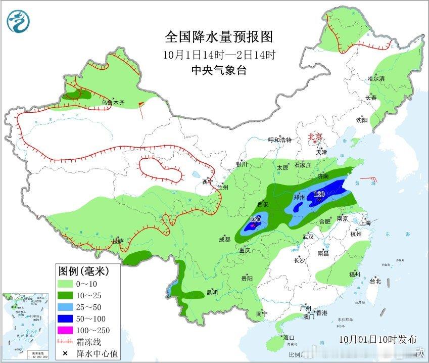 根据中央气象台10月1日10时发布的暴雨蓝色预警:预计,10月1日14时至2日14时,河南大部、山东南部、安徽北部、江苏北部、陕西南部、湖北北部、四川东北部、重庆北部、云南西部等地部分地区有大到暴雨,局部地区有大暴雨(100~160毫米)。上述部分地区伴有短时强降水(最大小时降雨量30~50毫米,局地可超过60毫米),局地有雷暴大风等强对流天气。