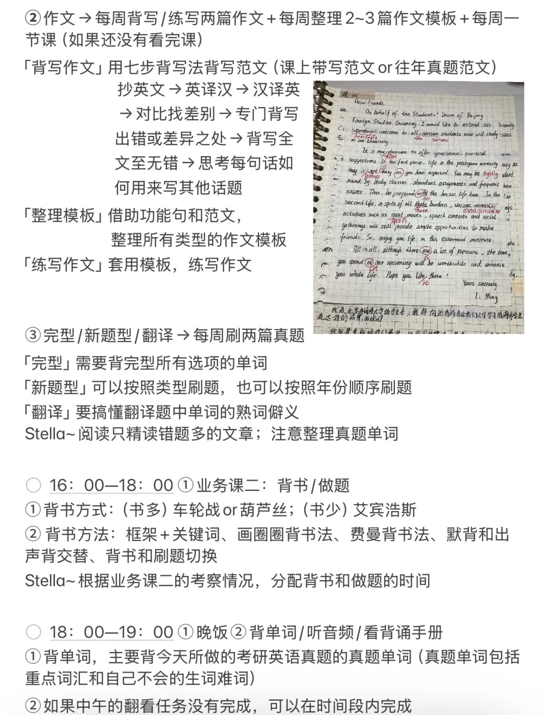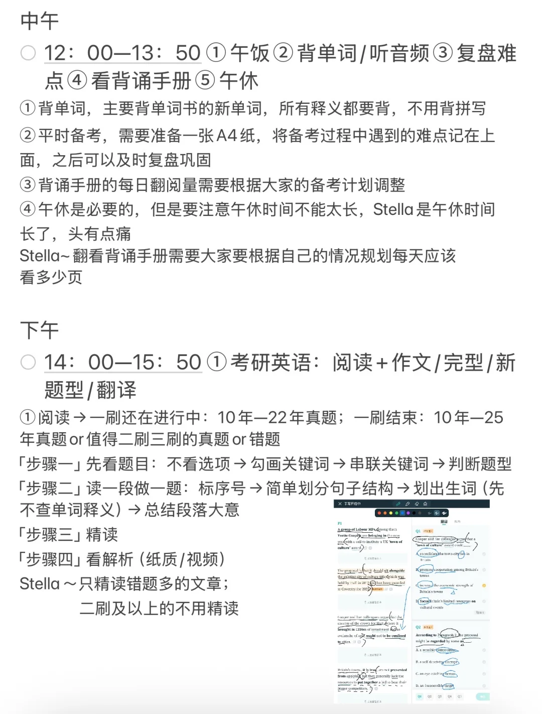 12:00—13:50 ①午饭②背单词/听音频③复盘难点④看背诵手册⑤午休