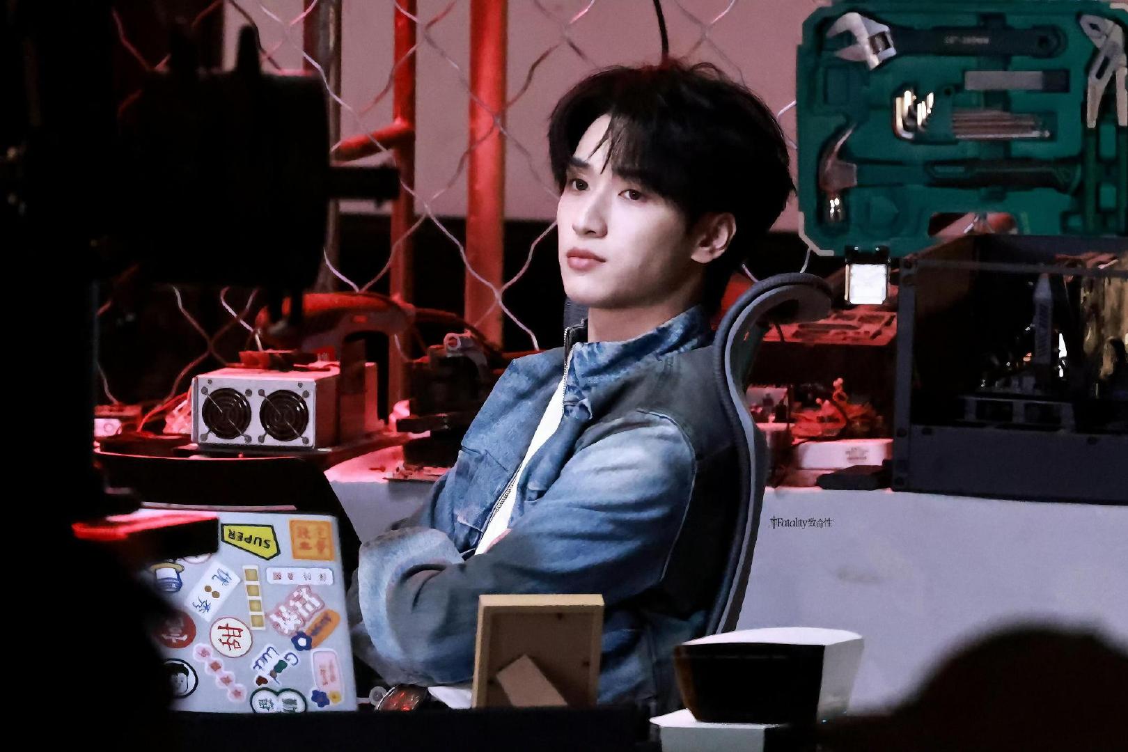 严浩翔定妆剧照,是来自浩翔学校作业的剧照,牛仔外套+无框眼镜,这个宋扬也太帅了吧,谁能不爱这样的浩翔呢~