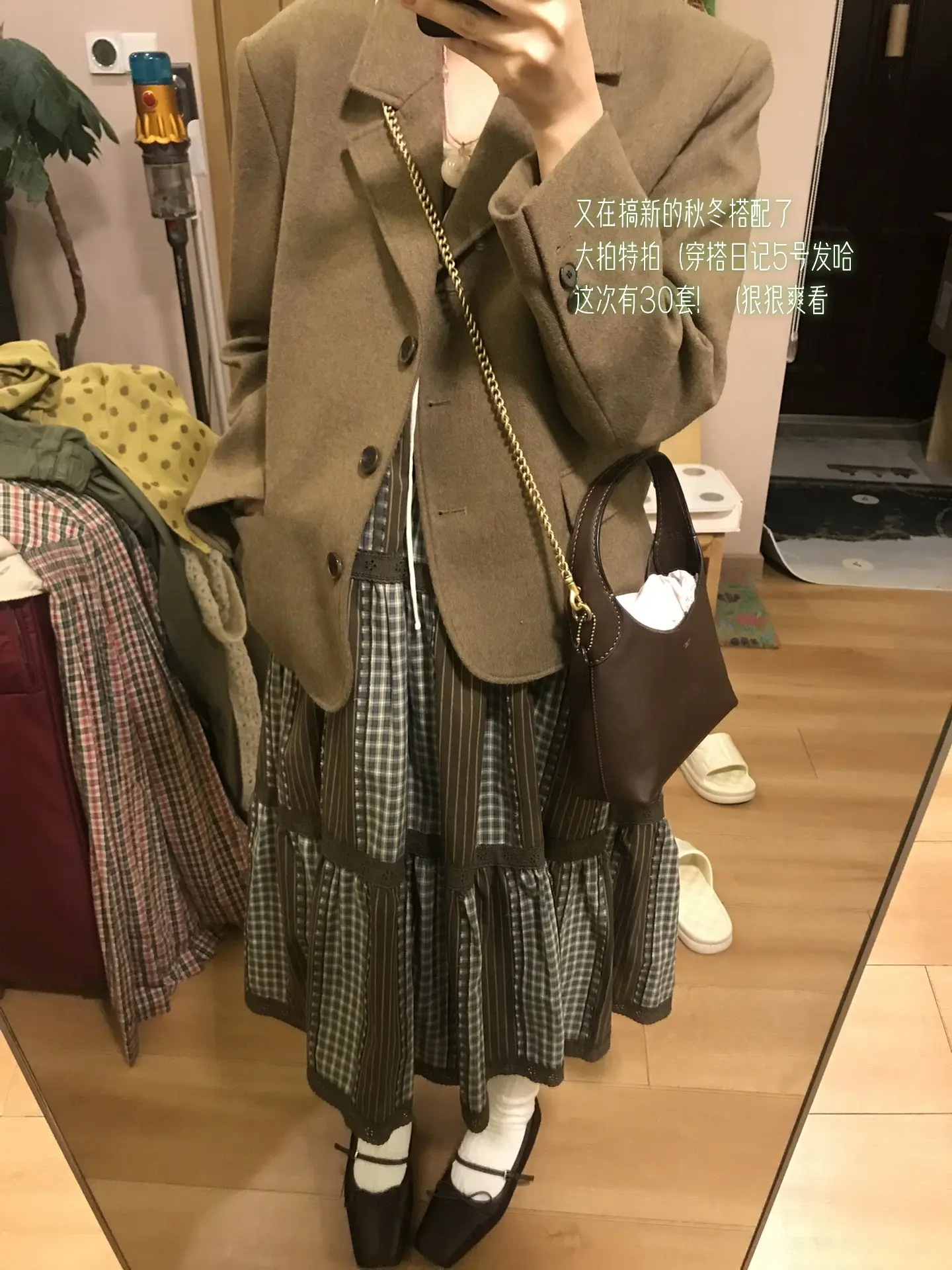 棕色露肩上衣+白短裙,一句话:把秋天的温柔和夏天的清爽一起穿在身上。棕色像