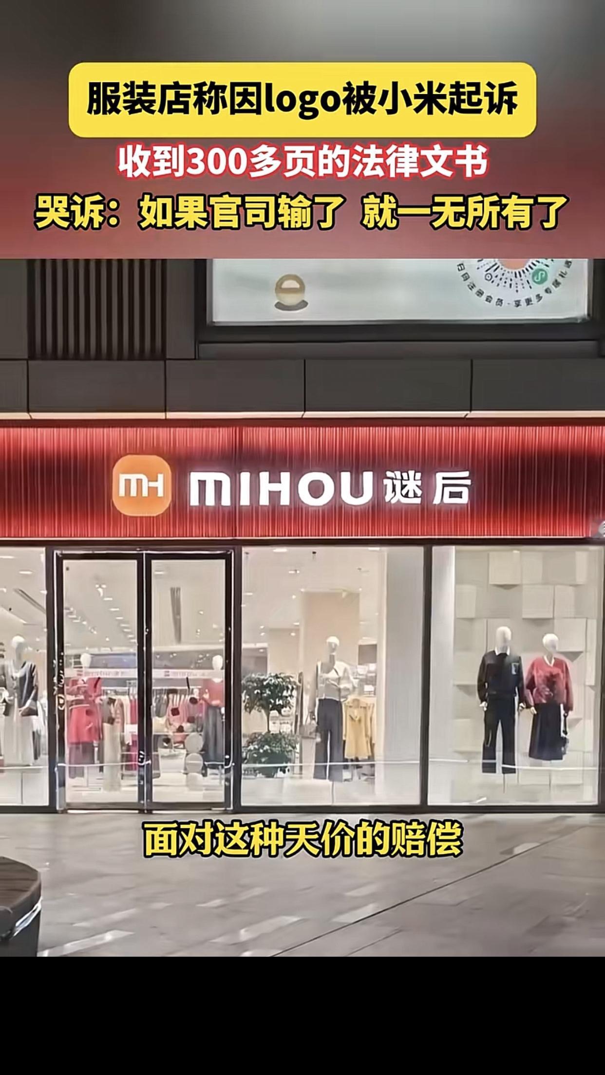 “因为这个logo,我被500强企业小米告了,如果输了,这个天价赔偿,我就变得一无所有!”广州一家叫“谜后工厂店”的女老板因自家店铺的商标带着m,被雷军告了。 这家店就开在某小区对面的大马路边上,每次路过我都还说,小米啥时候开服装厂了? 被告真不冤,m那么多种写法,外框那么多种形状,颜色那么多种选择,h那么多种设计,你偏偏搞成橘黄色,这是设计的吗?这个设计师剽窃!人家小米是用驰名商标,这是全品类保护,不管你的业务是否与小米存在竞争关系,都不允许套别人商标的外形。自己当初弄这样的商标,而且颜色都不改,心里咋想的自己不清楚吗? 如果你因为官司店就倒了,那真是你自己的问题,赖不了别人。现在唯一能做的就是,在雷军面前卖惨,即时整改,或许雷老板会大发慈悲,也许事情也就过了。