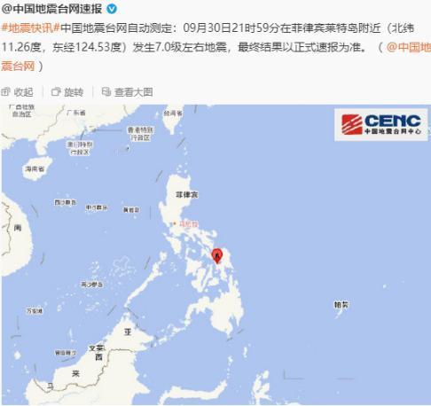 菲律宾中部岛屿的莱特湾,9月30日晚上10点,爆发7级地震,还是9.8km的浅层