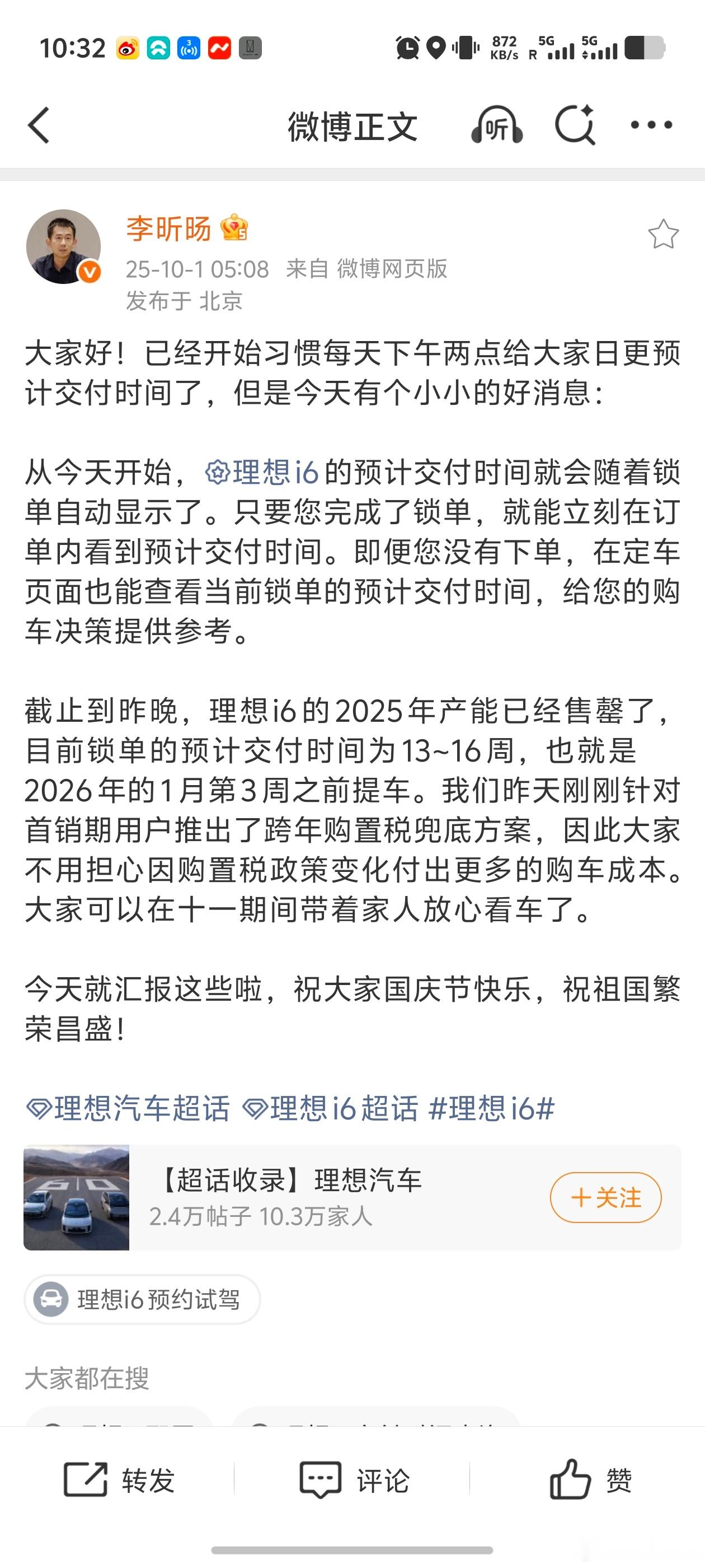 好了,现在很明确了,恭喜理想,i6 今年产能已售罄。