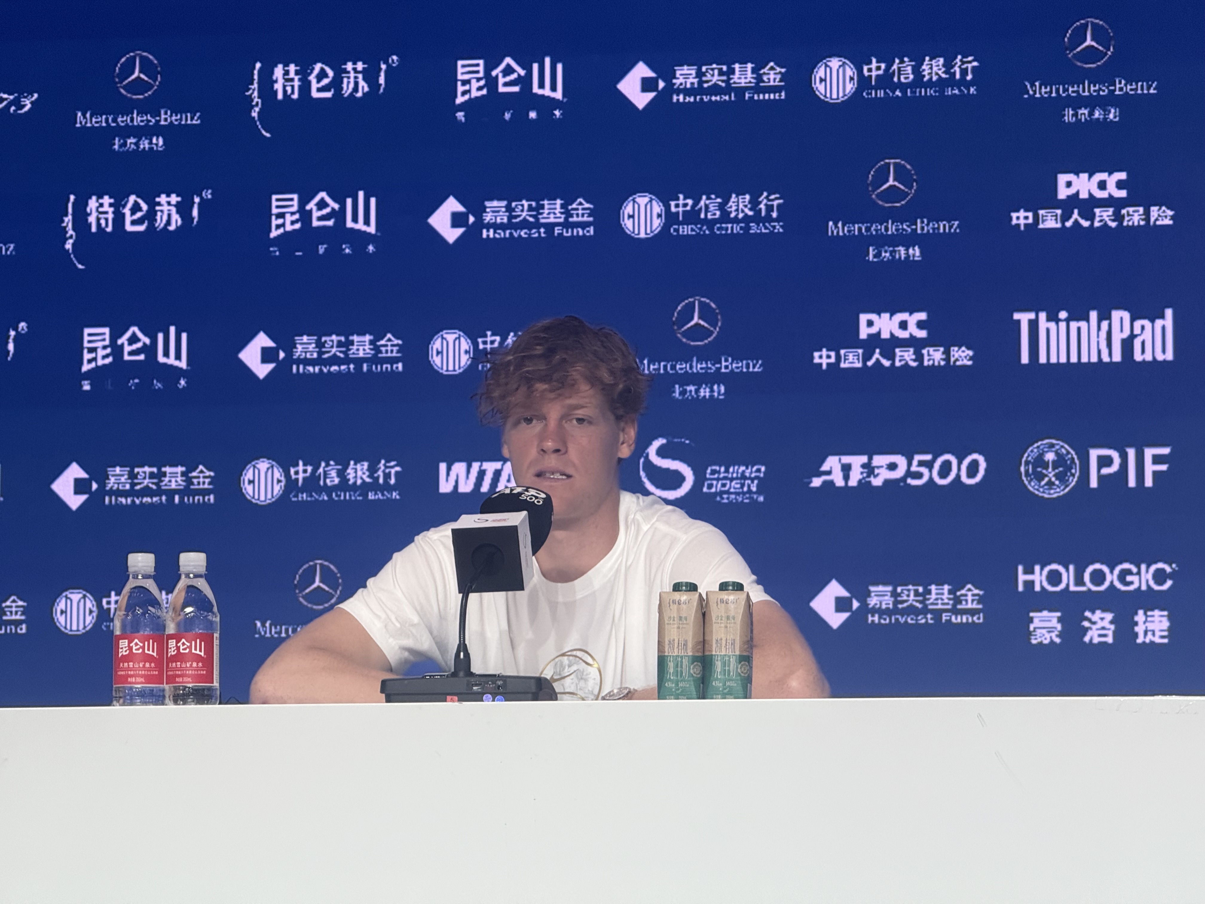 直播吧10月01日讯中网男单决赛,辛纳两个6-2轻取勒纳-钱,再夺中网冠军。赛后辛纳出席了新闻发布会答记者问。
