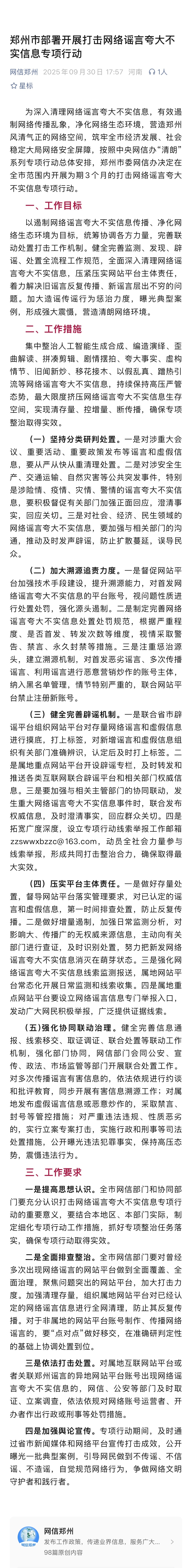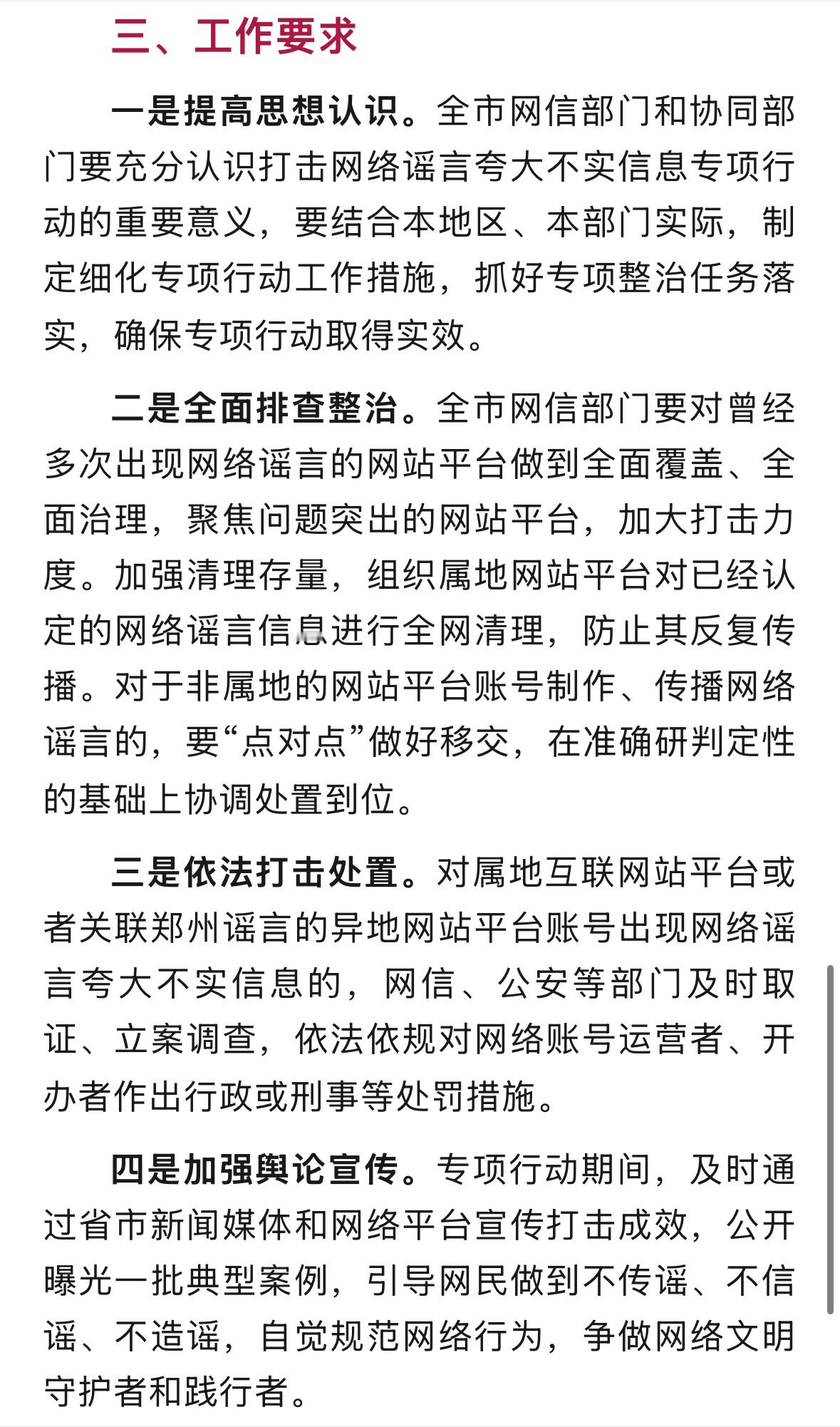 为深入清理网络谣言夸大不实信息,有效遏制网络传播乱象,净化网络生态环境,营造郑州