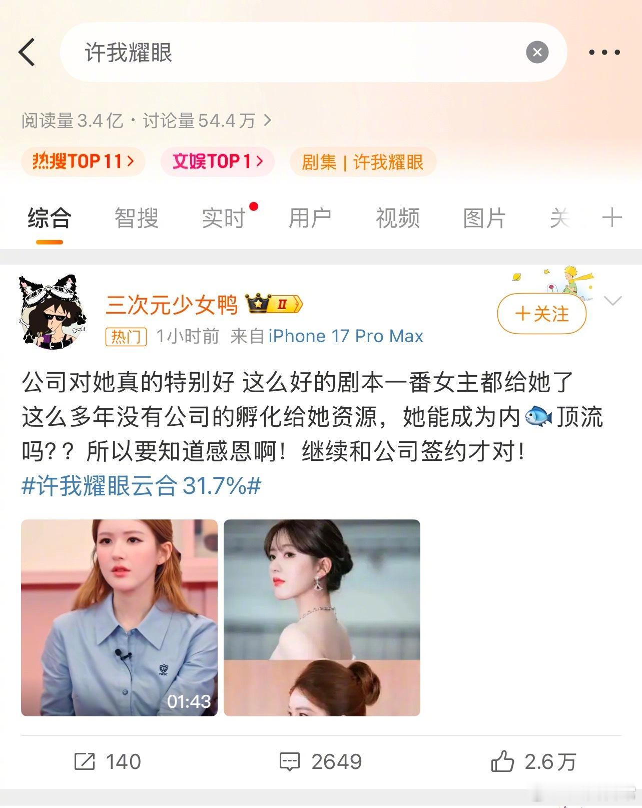 《许我耀眼》的热搜里在吹银河酷娱,让赵露思跟银河酷娱接着签约