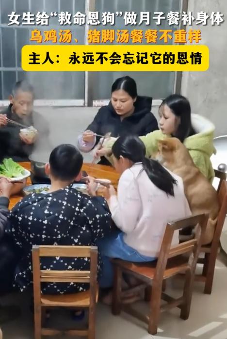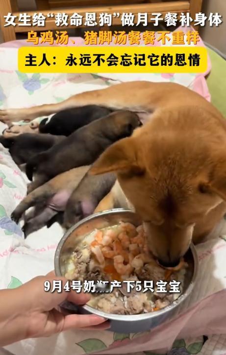 “万物皆有灵!”9月4日,广西贺州,一只家里的土狗在生下了5只小狗后,竟被主人亲自用手喂“月子餐”,顿顿吃乌鸡汤、猪脚汤等等大补身体,网友得知原因后怒赞:这只狗吃什么都是它应得的!     为什么这么说?因为奶瓶对这个家来说,不只是宠物,而是救过命的恩人。     一年前的夏天,小主人在河边玩,不小心掉进水里。     四下没人,孩子不会游泳,扑腾得厉害,很快就要沉下去了。     奶瓶当时正趴在岸边,见状直接跳了下去。     那条河比想象中要深,它在水里浮浮沉沉,还是硬生生游到了孩子身边,一口咬住衣角,用力往岸边拖。     它牙齿咬得直打颤,身子几乎要被水冲走,可就是没松口。     等到把孩子拖到浅水区,它还不停狂吠,终于把附近干活的老人叫了过来。     孩子捡回了一条命,奶瓶却累得直趴在地上,大口喘气,毛全湿透,嘴里还带着泥。     那以后,奶瓶就成了家里的“大功臣”。     爷爷当时就放话:“它救了我孙子,就是咱家人,得像亲人一样对待。”     从前吃饭,奶瓶只能等剩下的骨头渣,现在是桌上有好菜,都会给它留一份。     特别逢年过节,小主人还会学大人的样子,对它鞠躬,说声“谢谢”。     一家人待它的心思,全都是真心实意。     今年9月4日,奶瓶生下五只小狗。     生产那天,它累得站不起来,连给小狗喂奶都要强撑着。     家里人看着心疼,赶紧杀了只本地鸡炖汤,说:“它救过孩子,现在又辛苦当娘,得好好补补。”     从那天开始,奶瓶的“月子餐”就排上了日程。     早晨是鲫鱼汤,鱼刺一根根挑掉,怕噎着,中午猪脚汤,得炖到筷子一戳就烂,晚上换乌鸡汤或者猪肚鸡,全是硬菜。     因为产后肠胃弱,肉都撕成小块,汤要撇掉油才喂。     前几天它实在起不来,主人就端着碗守在窝边,一勺一勺喂到嘴边。     这一切拍下来传到网上,评论区全是点赞。     有人算过,这样补一个月,光食材就要花不少钱。     可网友们没一句酸话,反而说:“这是报恩啊,换成我也会这样。”     还有人感叹:“土狗最有灵性,它救命换来的待遇,再好都不过分。”     现在,奶瓶恢复得差不多了,能自己站起来吃东西,也会护着小奶狗不让人随便靠近。     五只小狗抱成一团,有的吃奶,有的睡觉,窝里暖洋洋的。     主人说,小狗等大点会找靠谱的人家送养,但奶瓶会一直留在家里,谁都舍不得它走。     说到底,大家羡慕的不是鸡汤、猪脚汤,而是这种互相守护的情分。     奶瓶当初拼命救了孩子,如今家里人细心照顾它,彼此早就不分“人和狗”,就是一家人。     大家夸的,其实不是那些鸡汤、猪脚汤,而是背后的那份情。     奶瓶当年用勇敢救下孩子,如今主人用心照顾它,这就是最朴实的双向守护。     很多人说得好:“没有无缘无故的好,奶瓶配得上这样的对待。”     对此你怎么看?     信源:南昌西湖发布