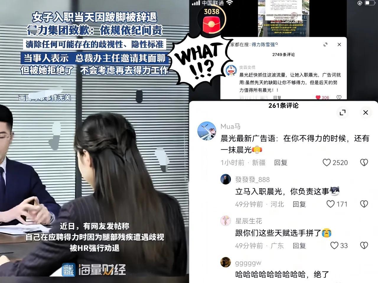 谁能想到啊!不光得力自己没料到,连晨光文具估计也懵了——得力道歉不仅没让网友消气,反倒把同行晨光给捧起来了。 得力辞退腿脚不方便的员工,这事儿办得也太糊涂了,纯属自砸招牌!这边得力犯傻,晨光可捡着便宜了,竞争对手出这种低级错,这送上门的好机会,简直是泼天富贵砸脸上! 依我看,晨光根本不用费啥劲,稍微搭把手就能稳稳接住这波好感。文案我都帮它想好了:“要是人生因小缺陷‘不得力’,别怕,晨光给你敞开大门,让希望照进来!” 更实在的是,赶紧把被辞退的姑娘招进来,好好培养下,哪怕做个小宣传员都行,宣传语就说“得力留不住,晨光给你踏实未来”,又暖又实在。 企业招人看的是能力不是外貌缺陷,晨光要是真这么做,既帮了人,又攒了口碑,多好!你们说这办法靠谱不?