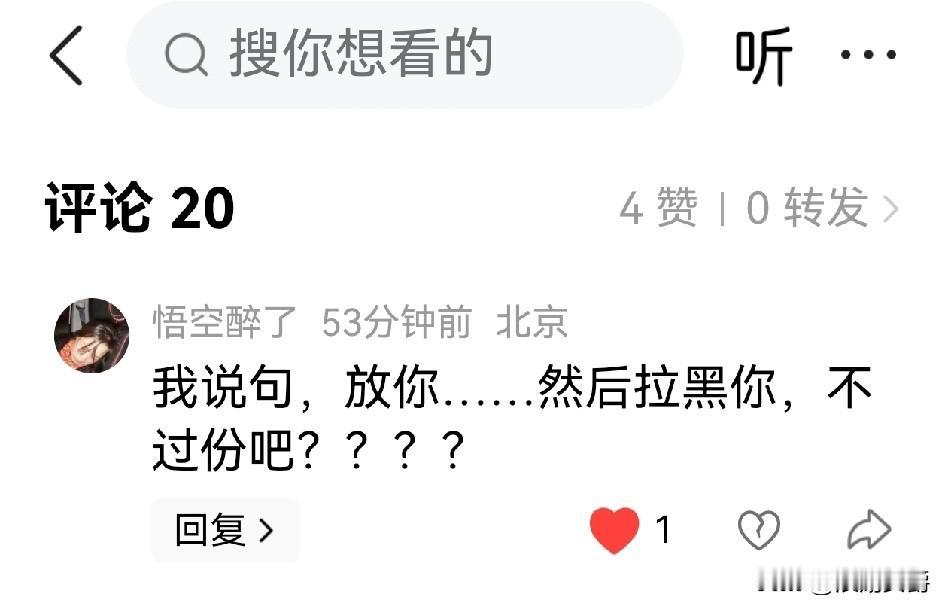 看这种人, 我说句河南胡辣汤真没陕西好喝, 这人破防了, 骂人,拉黑[捂脸]。 你有本事骂嘛! 拉黑干啥? 怕挨骂? 图一时嘴爽? 就像小时候打架, 打不过骂一句就跑。 你可以说河南的更好喝, 我又不骂你, 多大点事, 这个素质在北京垫底。 我看了他主页, 呵呵,明白了! 性格就如此, 什么事都插一嘴,杠一句。 显得自己特横一样, 横一次是横, 事事横每天横就显得自已像愣头青。 其实在网上谁怕谁呢? 别把自己当回事。