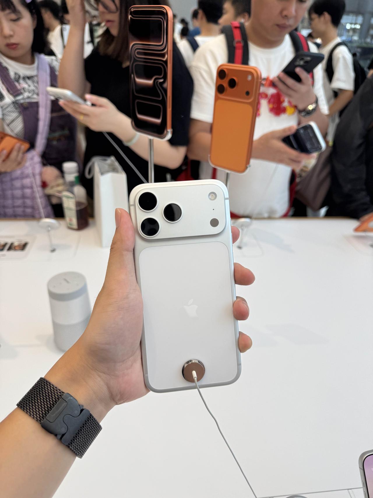 今年iPhone17系列最受欢迎的型号除了标准版就是iPhone17 Pro Max了,店里非常多的人在体验。 1、对比iPhone16 Pro Max,感知最强的提升就是握持手感,边框更加圆润了,一体化铝合金中框过度确实更加自然。 2、另外拍照新加入的4倍长焦裁切实现的8倍等效光学变焦,比原来的单5倍好用那么一点。 3、运存提升到12GB,后台留存能力更好了,8GB运存的iPhone开相机是有概率杀后台的,12GB运存的iPhone完全不杀。 今年你们冲了17PM嘛?使用体验如何?都来聊一聊[灵光一闪]iPhone 17 Pro Max真实使用体验