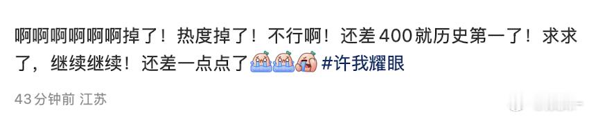 许我耀眼 别唱衰啊,才十点多,平时都冲到十一点多的,现在热度还在涨31175了