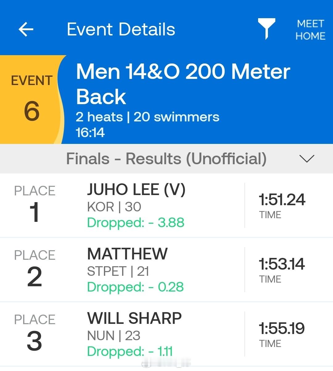 男200仰:🇰🇷李周浩 1:51.24 NR
