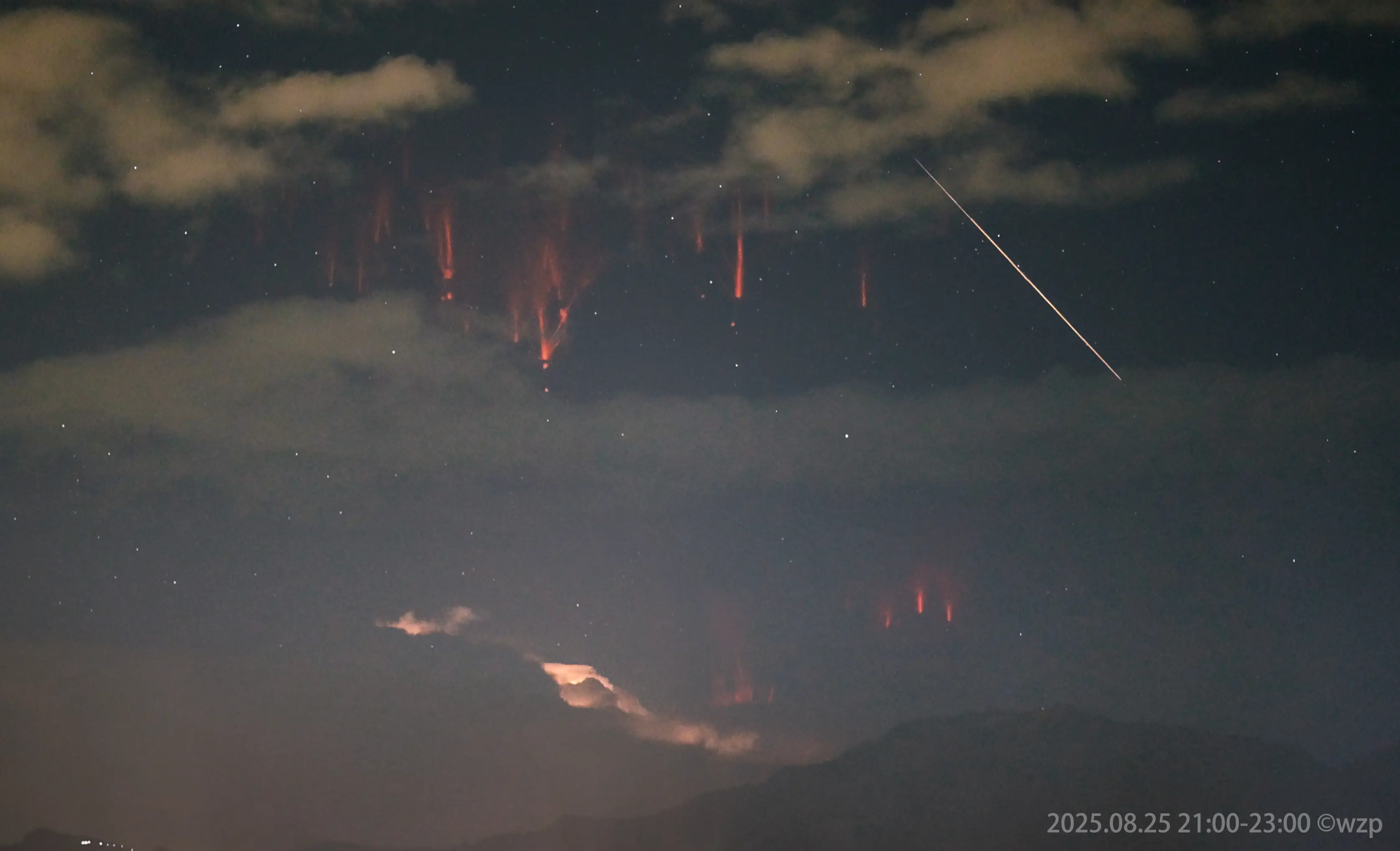捕捉到神秘的大气闪光✨原来是红色精灵闪电。某天在天台拍星,看到远处有强雷暴发生,于是马上拿了第二台相机对准雷暴上空录制视频,后期回放果然捕捉到了罕见的红色精灵!⚡⚡⚡ 更幸运的是,在两个小时的录制中,共捕捉到了三次红色精灵爆发,还有一颗超亮的火流星,按出现位置合成在了图二中⚡☁️
