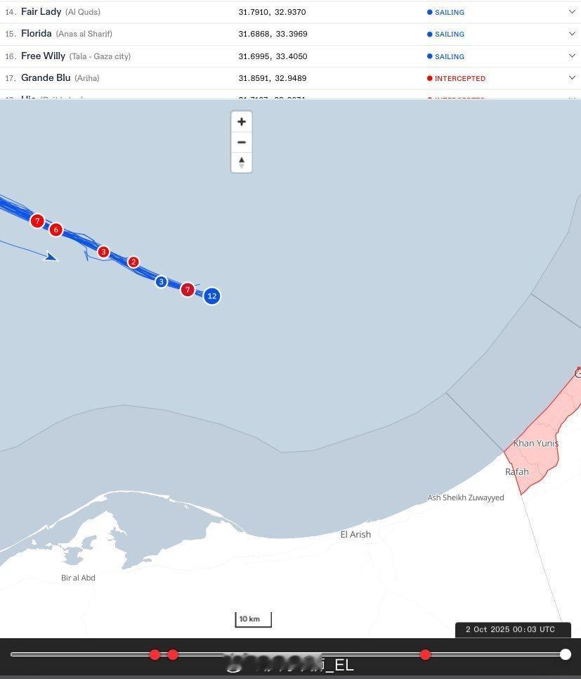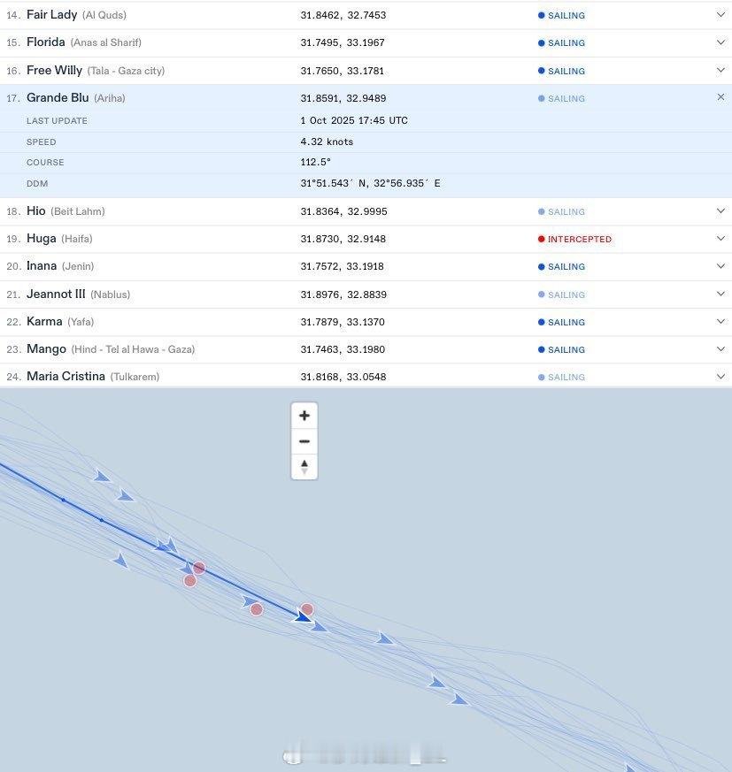 加沙全球舰队开始遭到以色列军警攻击,目前已确认有13艘船遭到拦截与扣押,其余仍在继续向加沙前进,距离已经非常近了。