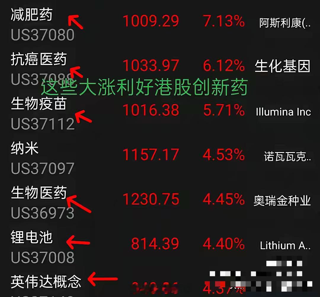 美生物医药与创新药,抗癌药,减肥药集体走强,板块涨幅4-7%,利好港股通创新及A股创新药,看今天港股表现如何?