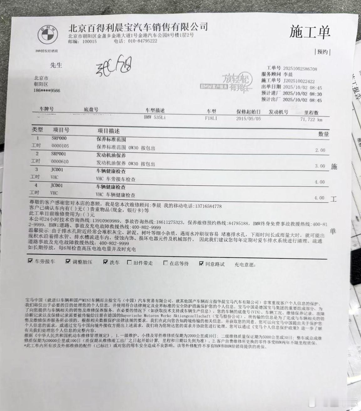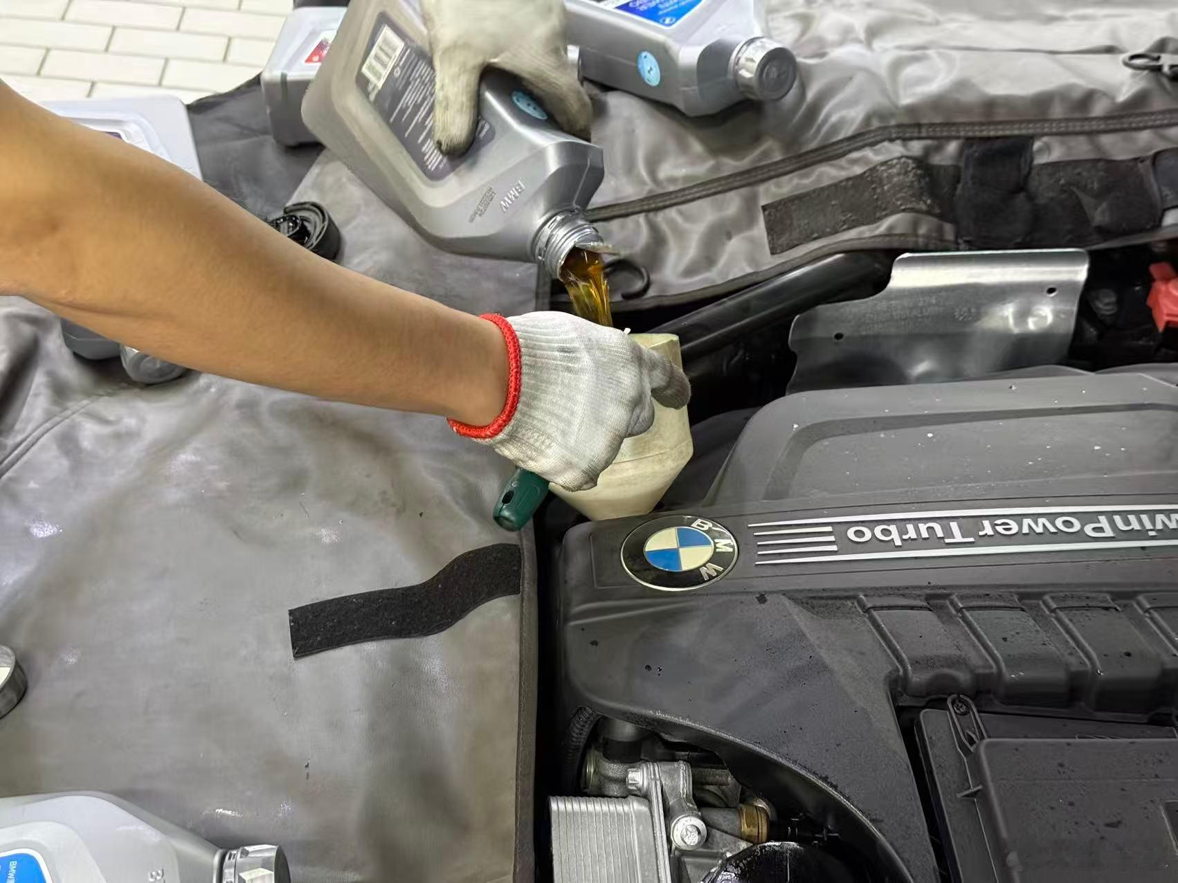 宝马5系[超话] F18 535Li提示该保养了。虽然上次换油后才开了两三千公里,但养车方面必须不能差事儿,咱直接开到4S店宝马原厂0W-30机油伺候。N55B30六缸发动机,每次需要7升油左右。看看放出来这油的清澈程度,就知道这两年基本没咋开[doge]