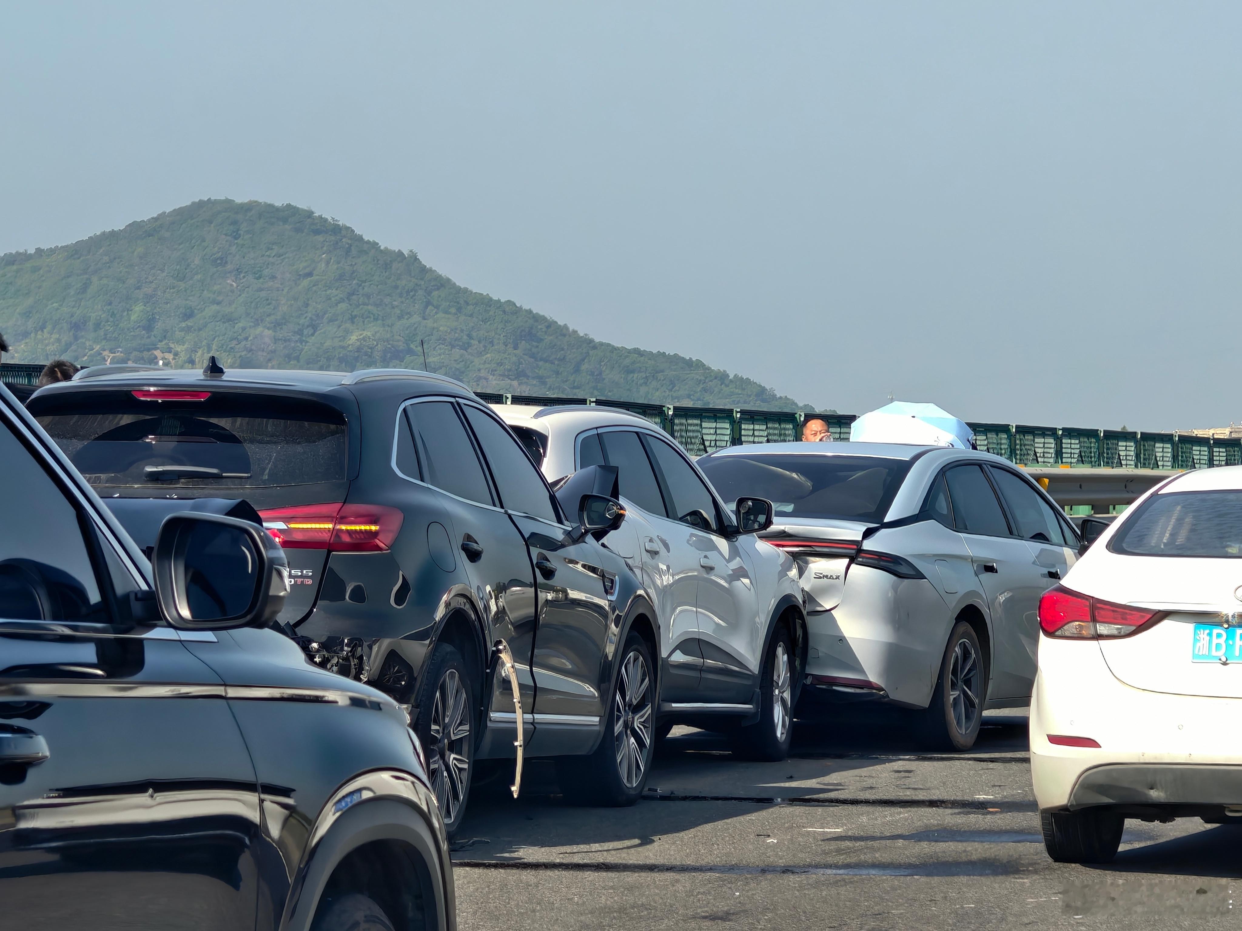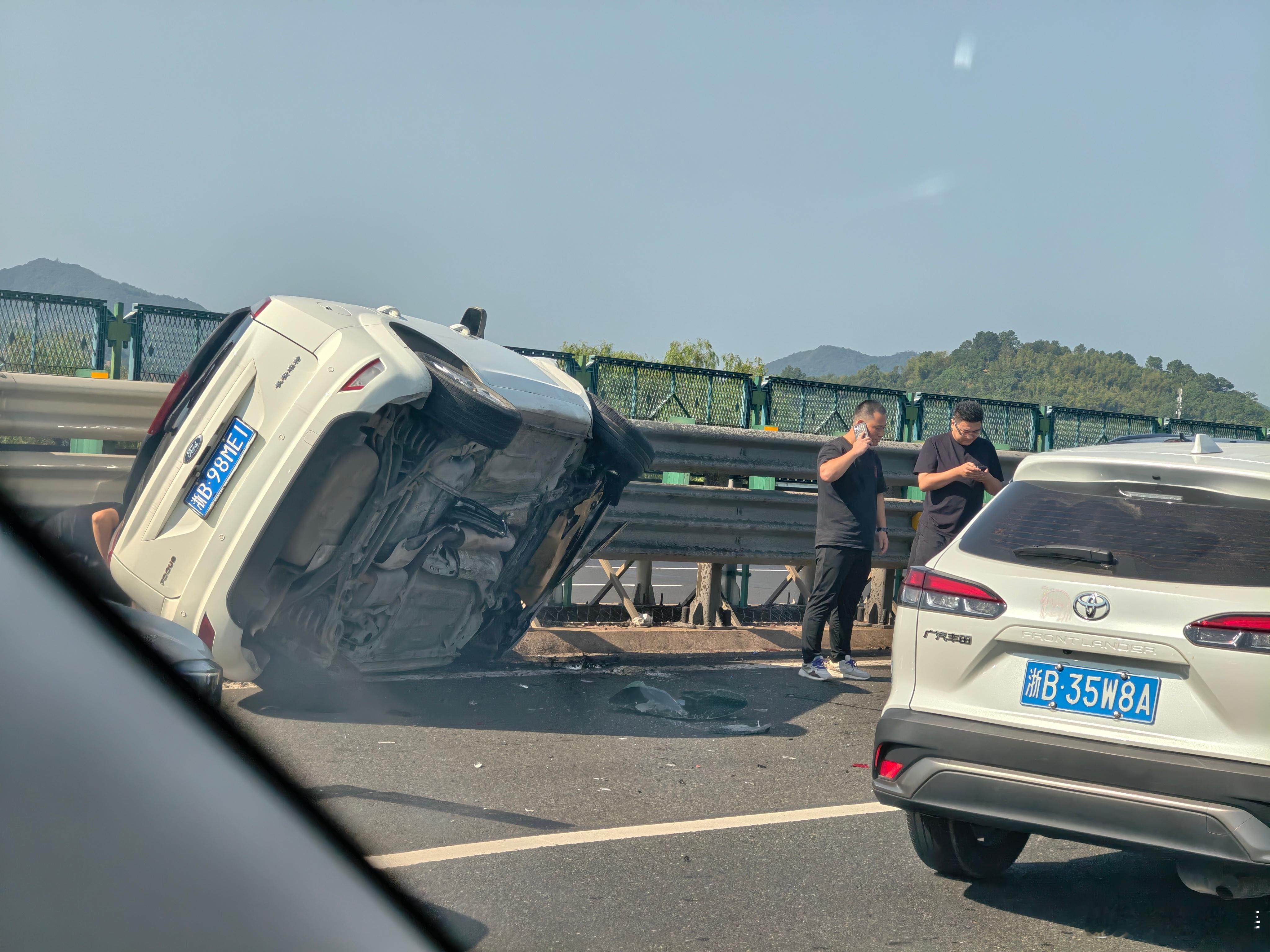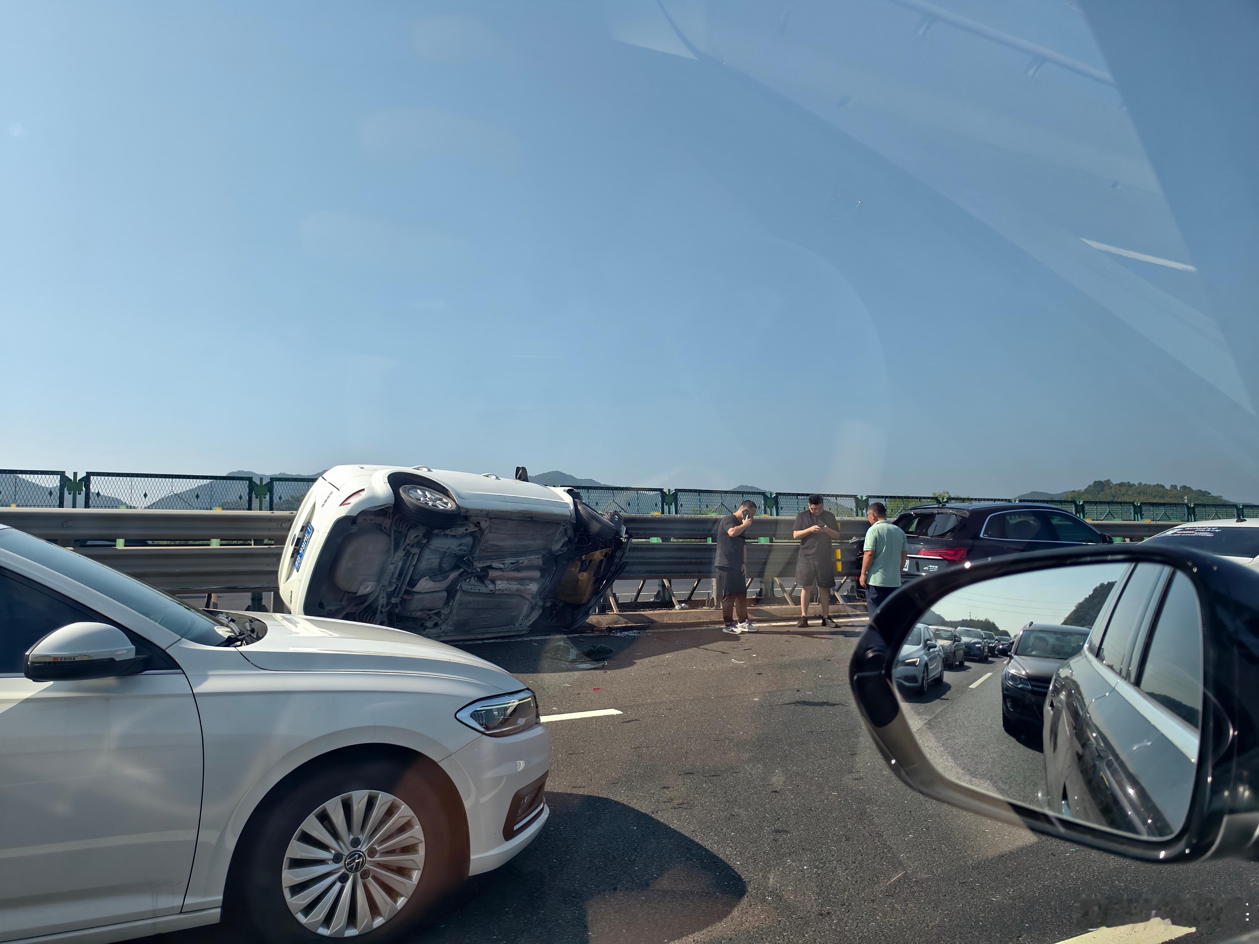 杭州湾环线高速上才走一小段路就看到三起车祸。大家国庆假期出行一定要注意安全啊 !
