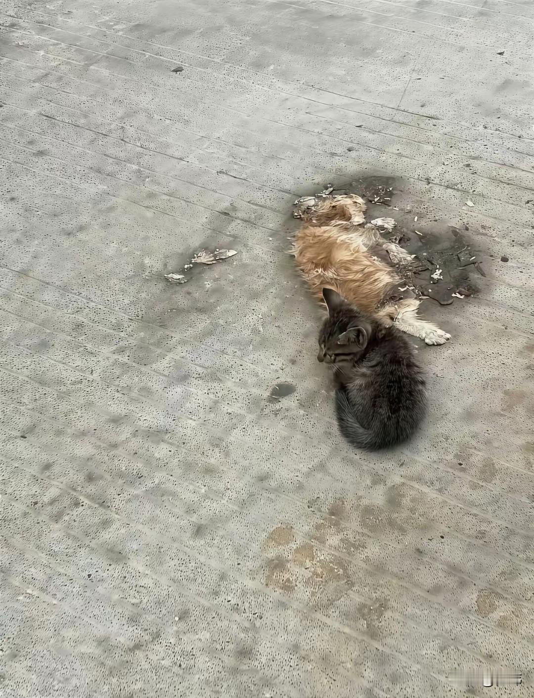 太可怜了吧!这天一位小姐姐骑着自行车去买早饭,结果在路口看到无比悲惨的一幕,一只
