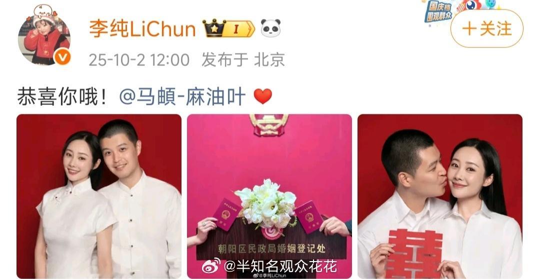 李纯马頔领证李纯马頔领证结婚