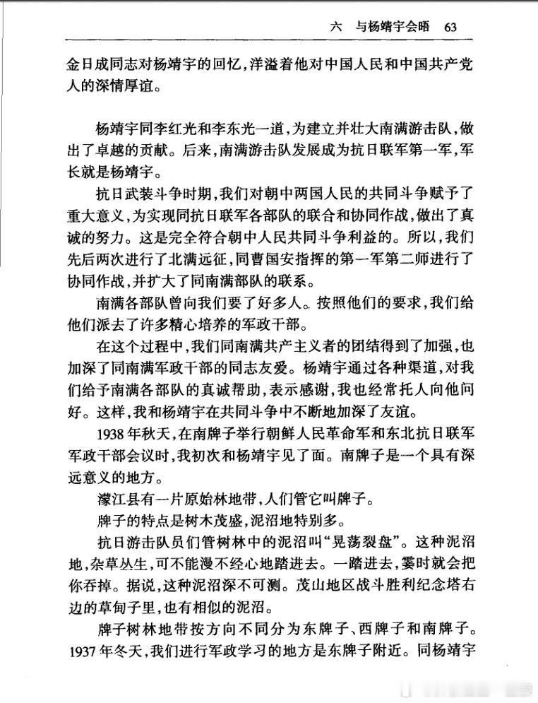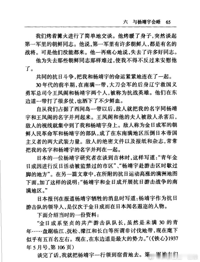 【《金日成回忆录》中关于杨靖宇的回忆】