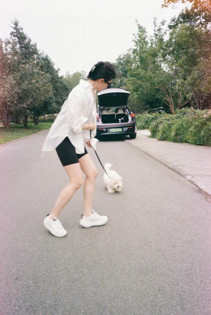 刘亦菲国庆晒自驾游plog,白衬衫搭黑吊带松弛感拉满!新狗狗也惊喜出镜,画面温馨