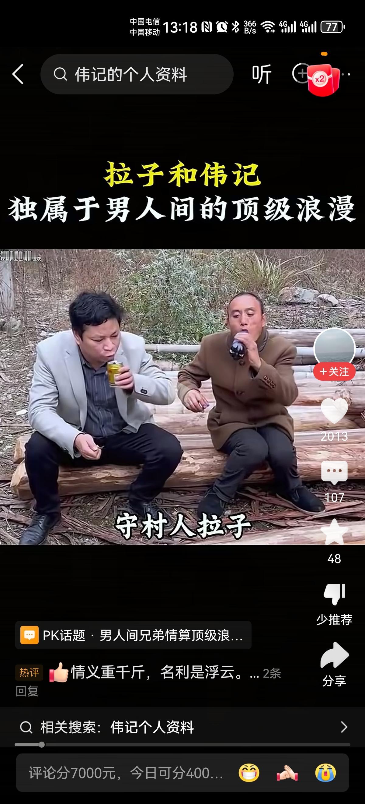 拉子和伟记,这才是真正的兄弟! 一个守村人,一个大老板! 守村人关心大老板工作累不累? 大老板关心守村人过得好不好? 独属于男人之间的顶级浪漫, 无法超越的顶级兄弟情! 咱们身边有相似的兄弟情吗?