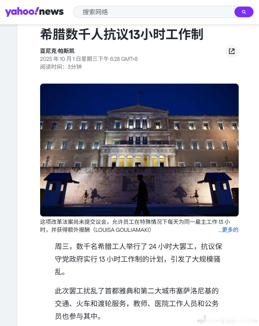 希腊全国罢工希腊抗议13小时工作制计划,希腊民众开始全国大罢工。希腊真狠啊。[哆啦A梦吃惊][哆啦A梦吃惊]
