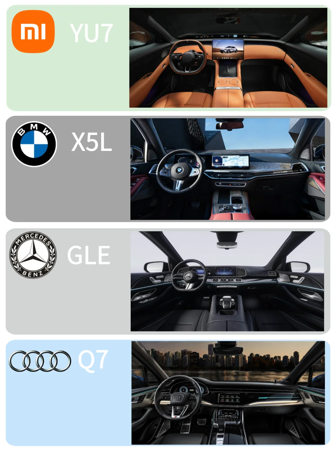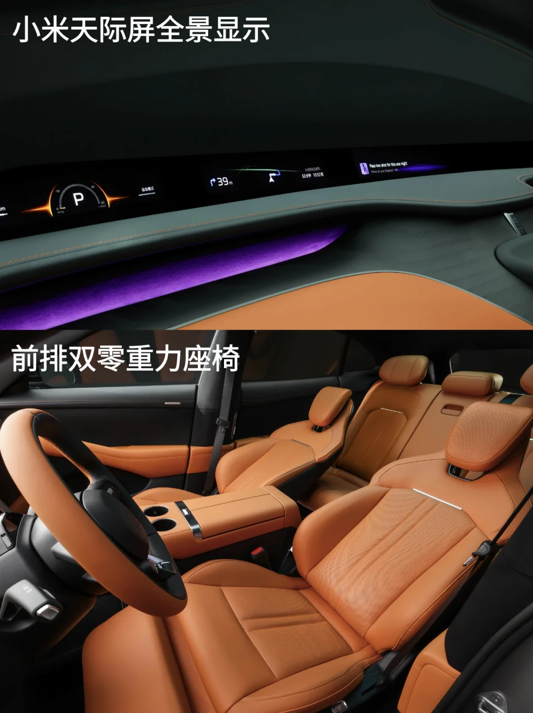 4⃣全系标配小米天际屏全景显示,采用全景曲面投影技术将HUD打在前风挡玻璃的黑色区域,形成全景显示的视觉效果,另外天际屏支持5种信息卡片的自由组合😍