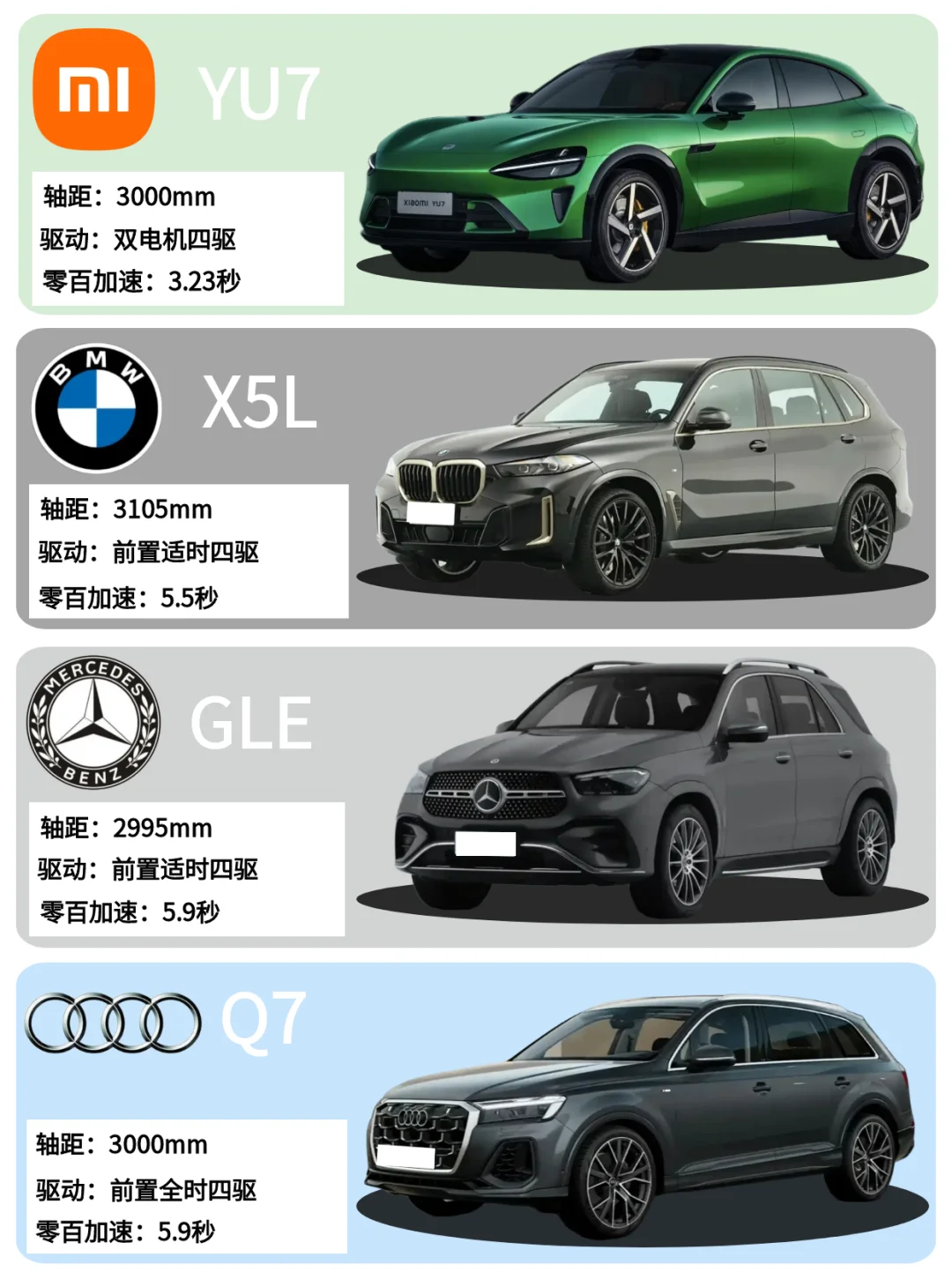 1⃣小米YU7全系采用800V高压碳化硅架构,峰值电压 897V,最大充电倍率达5.2C🔋,也就是说无论高低配都不用担心补能效率⚡️