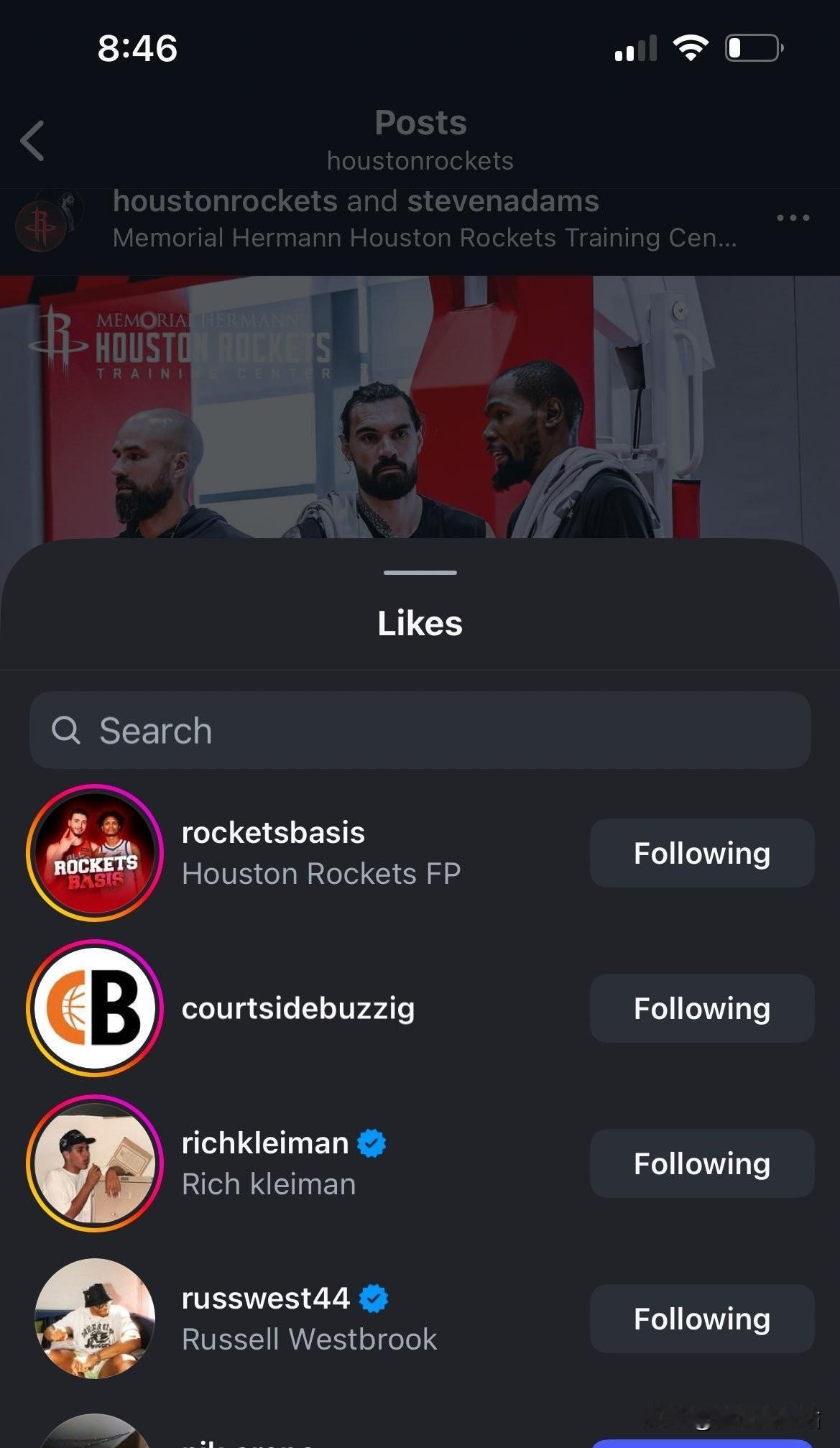 雷霆三少重聚休斯敦? 火箭训练营开启第二天,火箭官方晒出了亚当斯和杜兰特训练的合照,有意思的是,身为二人前队友并且目前仍是自由的球员的维斯布鲁克还在该条动态下点赞了! 亚当斯等了杜兰特三年,三年之后又三年,这才终于等回来了和大哥再续前缘的机会,这威少该不会也要来给休斯敦提提速吧?忆往昔,三人还都是年轻模样,回忆很好,只不过,无论是杜兰特球迷还是火箭球迷,都还是觉得距离产生美吧?