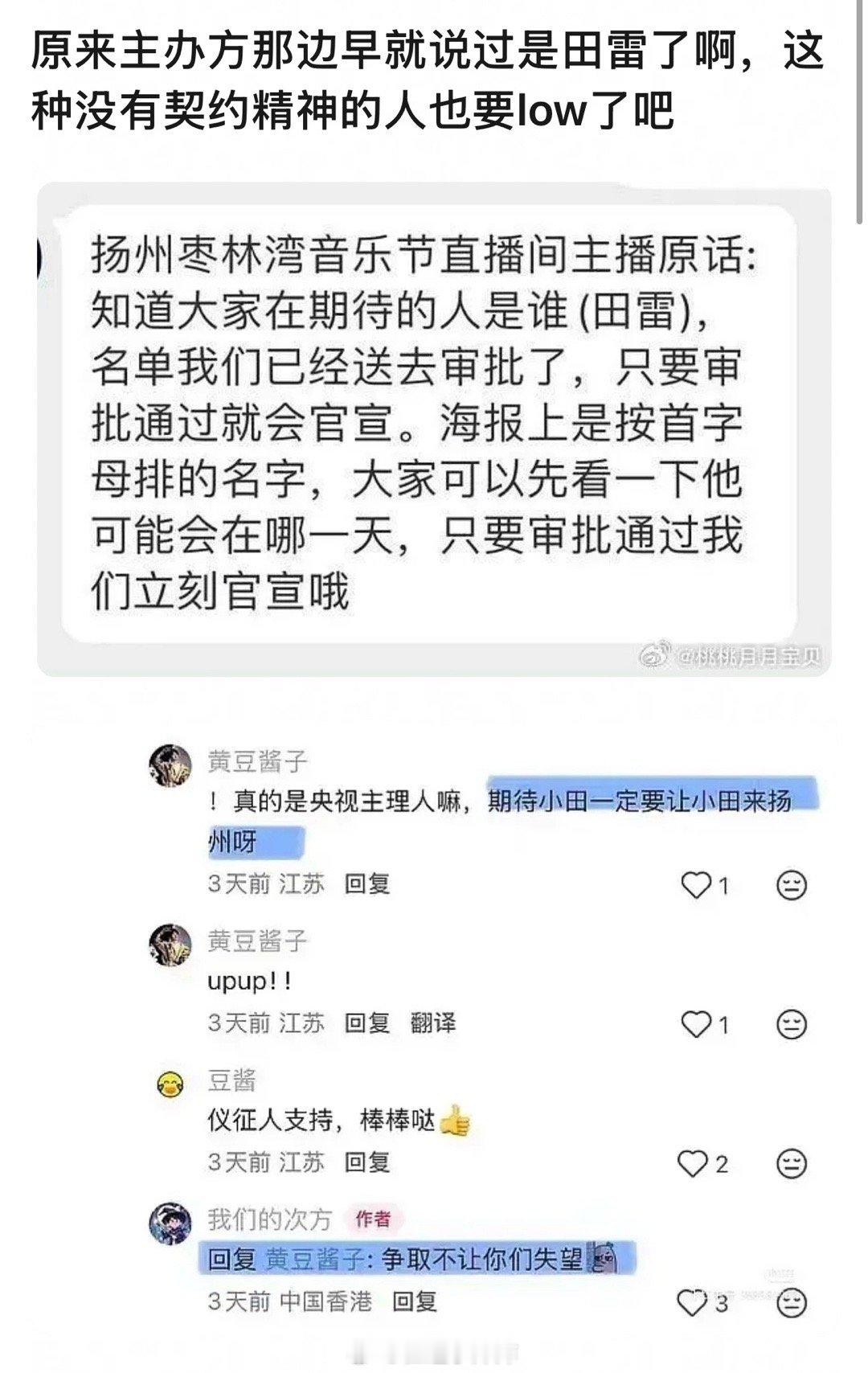音乐节官方就差点名道姓“田雷坐地起价”了,粉丝这次可咋洗啊