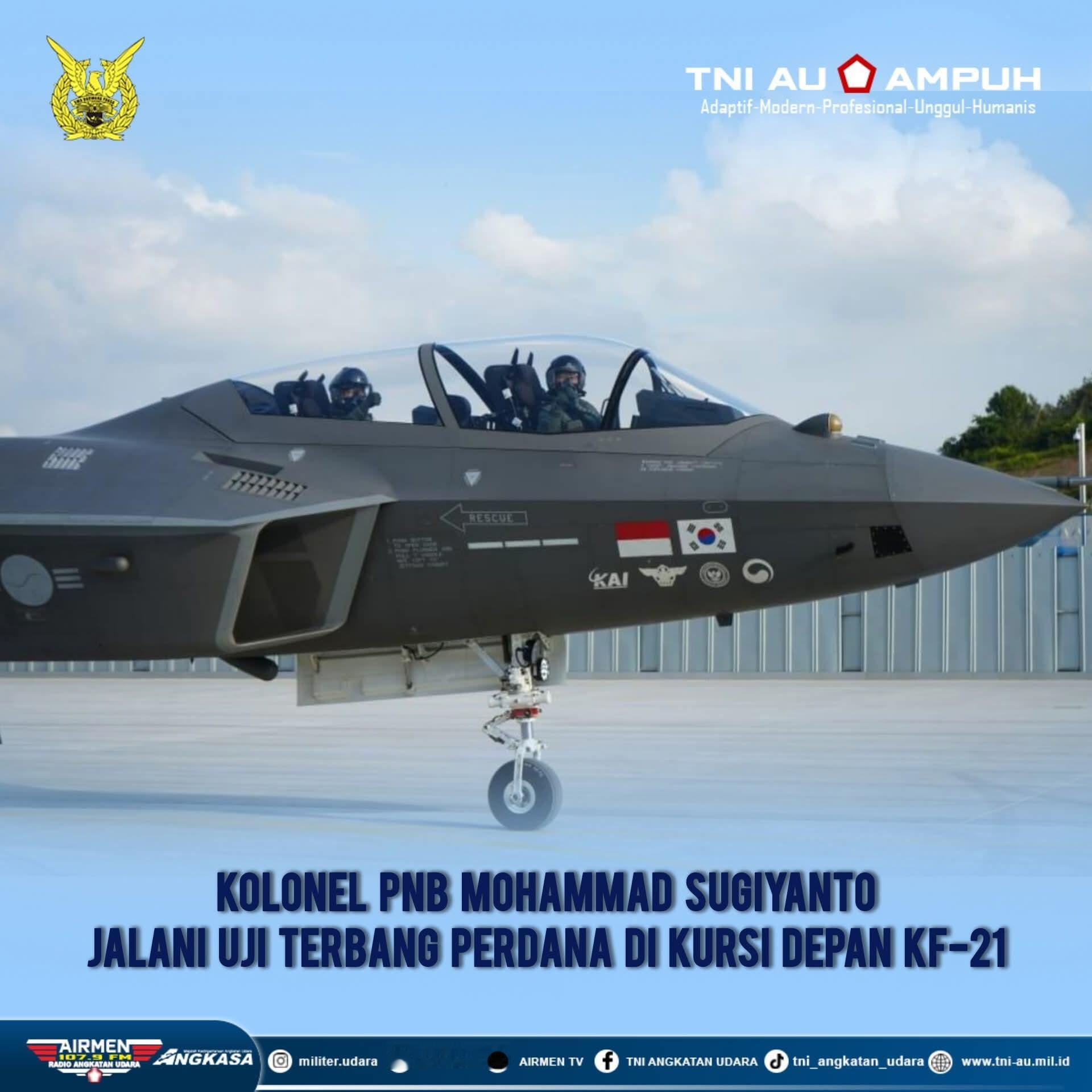 印度尼西亚与韩国的防务合作再次迎来重要里程碑。印尼空军(TNI AU)试飞员、呼号 “Mammoth” 的穆罕默德·苏吉扬托上校,于 2025 年 9 月 30 日(星期二)在韩国泗川,成功以 前座飞行员 的身份,完成了 KF-21 “猎隼”(Boramae) 4.5 代战斗机原型机的首次试飞。