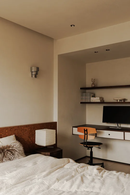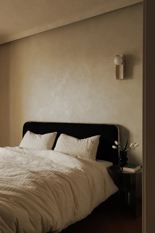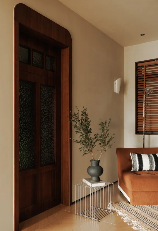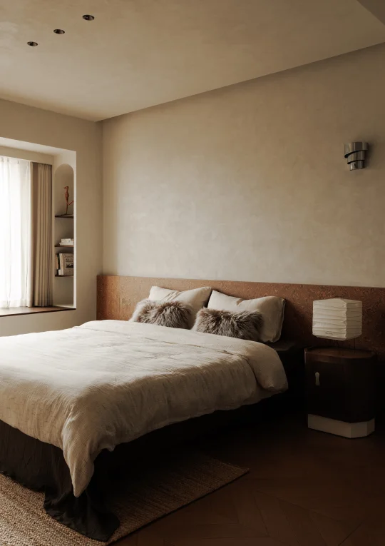3️⃣墙面艺术:时光的斑驳肌理 - 采用艺术涂料手工打磨出斑驳痕迹,为墙面注入随性而富有层次的艺术感,仿佛承载着光阴的故事,与木质调性相得益彰。
