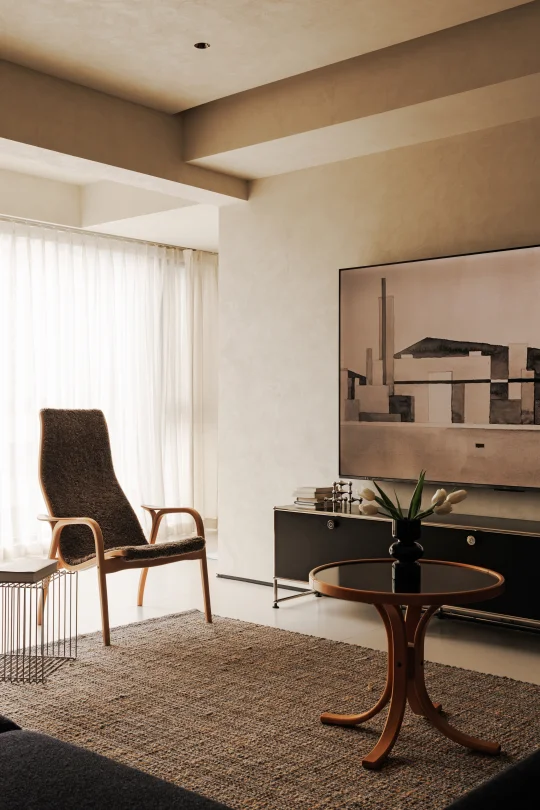 4️⃣点睛之笔:中古孤品的叙事 - 精心挑选的中古孤品软装,每一件都是独特的,它们不仅是功能家具,更是空间的文化烙印与精神内核。