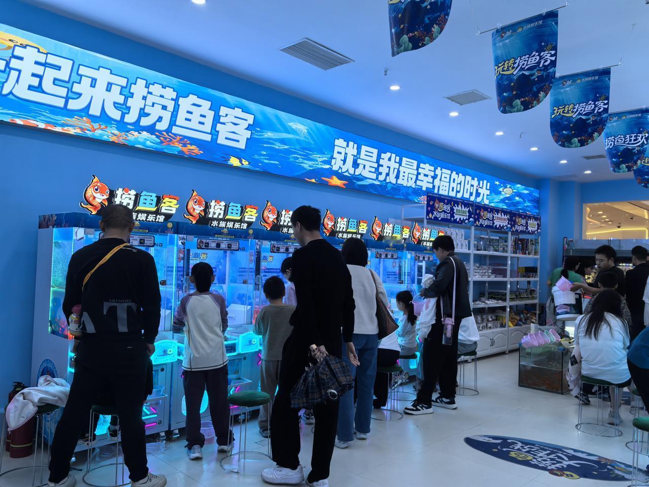 下雨的快乐就是去捞鱼 国庆放假啦,去哪里玩呢,转了一大圈,到处湿漉漉的,被逼到室内玩游戏。 民发广场新开了一家捞鱼馆,这还是第一次见,现实版的捕鱼达人吗? 小时候,带娃子玩游戏机上的捕鱼达人,今天,我问娃子,确定带老妈去这里玩?娃子说,下雨去哪呢,走,一起试试呗。 “和爸妈一起来捞鱼客,就是我最幸福的时光。”我看了一下玩的人群,人家都是爸妈带小朋友,今天是娃子带老妈来现场捉鱼。 只见儿子兑换好了游戏币,把我推到了游戏机旁边,投了两个游戏币,说:“试试呗,试试手气!”这和抓娃娃机原理是一样的,可惜鱼儿是活动的,在水里游来游去。我抓不到啊! 只见儿子不一会就抓了几条鱼,玩抓娃娃机他也是高手,他指导我,把抓篮拖到角落,眼疾手快点按钮。 哎呀,中鱼,这比钓鱼兴奋多啦!看看,40个游戏币的收获吧! 又是简单快乐的时光!友友们,下雨天,你们去哪玩啦?一起分享一下。