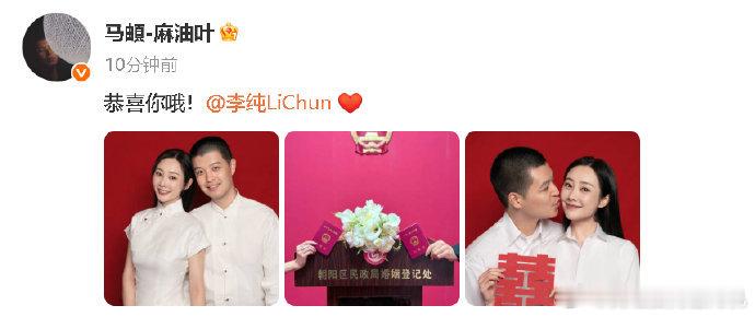 李纯马頔结婚照,谁懂啊官宣结婚,两人晒出红底照&领证现场照片,新婚很快乐呀,两位红底照很美啊~