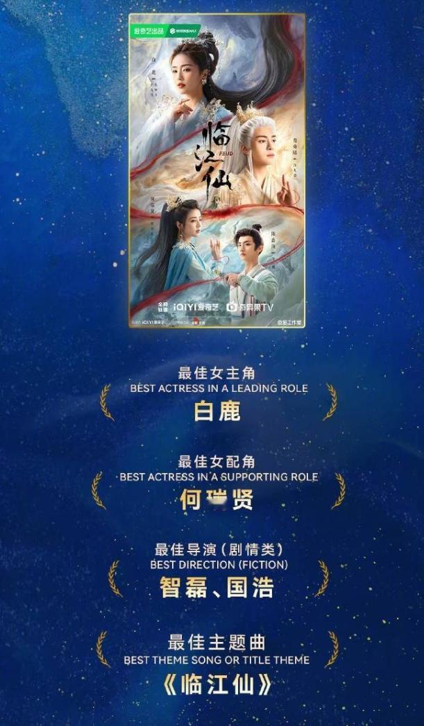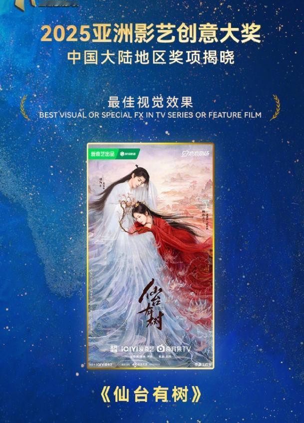 2025亚洲影艺创意大奖 最佳男主李现《人生若如初见》,最佳女主白鹿《临江仙》,最佳女配何瑞贤《临江仙》,最佳视觉效果邓为的《仙台有树》,还有还几个其他奖项,爱奇艺撕奖能力真强!