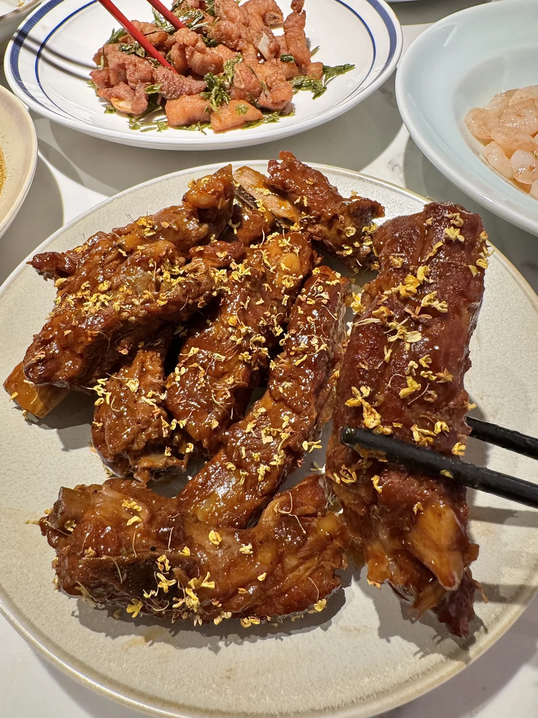 本人真的很爱!!很对我的杭州胃😭😭桂花排骨、荠菜年糕、龙井虾仁、东坡肉、桂花酒酿水铺蛋…都好好吃🤤还有牛肉炒年糕,会有下一次!!!!
