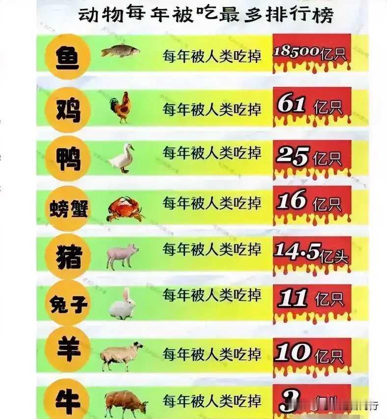 要说每年被中国人吃的最多的动物,猪必须排第一。中国人一年能吃掉7亿头猪,贡献了全球猪肉消费的一半,妥妥的“国民肉”。像烤猪排、红烧肉,都是餐桌上的常客。而且在南方,每头猪都能“物尽其用”,黄喉、肥肠等都能做成美食,川渝人尤其爱吃猪肉。 鱼也不少,每年人类吃掉的鱼总重量超一亿吨,沿海地区吃鱼就像家常便饭,刺身、烤鱼等做法让人欲罢不能。火鸡虽然主要在美加节日餐桌常见,但全球每年也有超六亿只被消费,它低脂肪高蛋白,受健身人士喜爱。