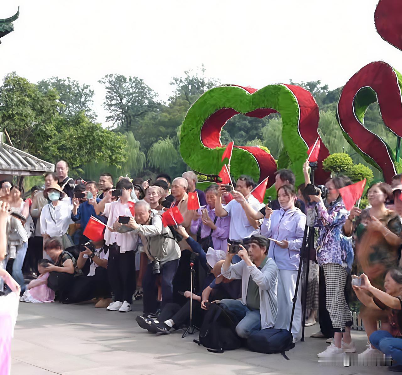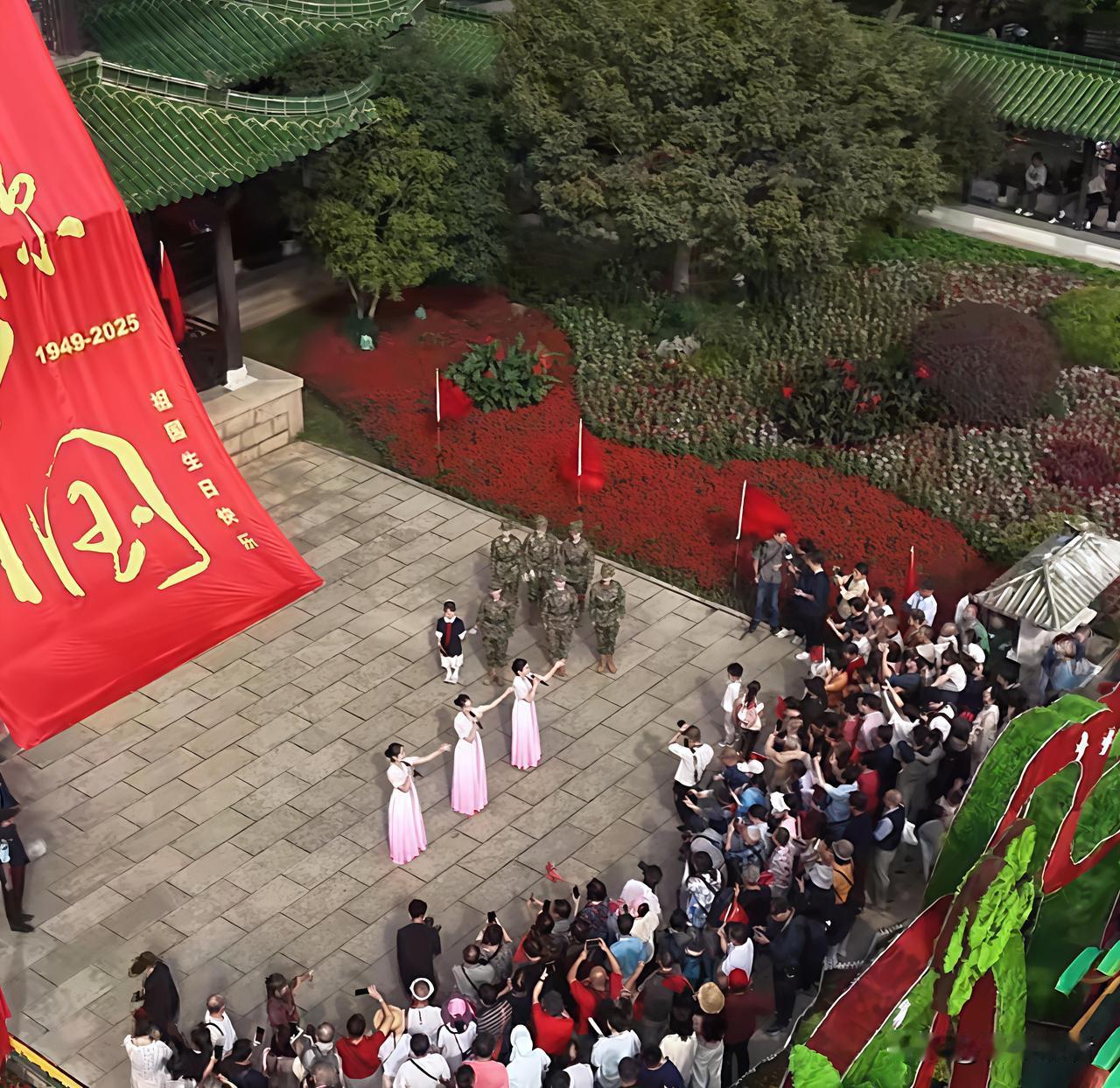 燃爆了,国庆当天的扬州瘦西湖上演超燃快闪!熙春台前红旗猎猎,人潮涌动,一场“红色