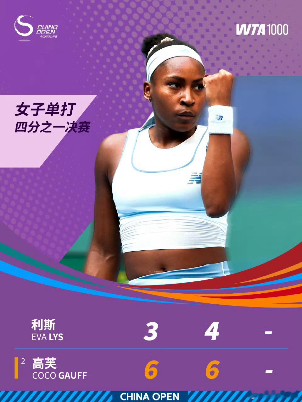 高芙晋级中网四强网球talking大会高芙中网10连胜 WTA1000中网女单1/4决赛,美国人卫冕冠军高芙2-0(6-3/6-4)德国人利斯晋级赛事四强!