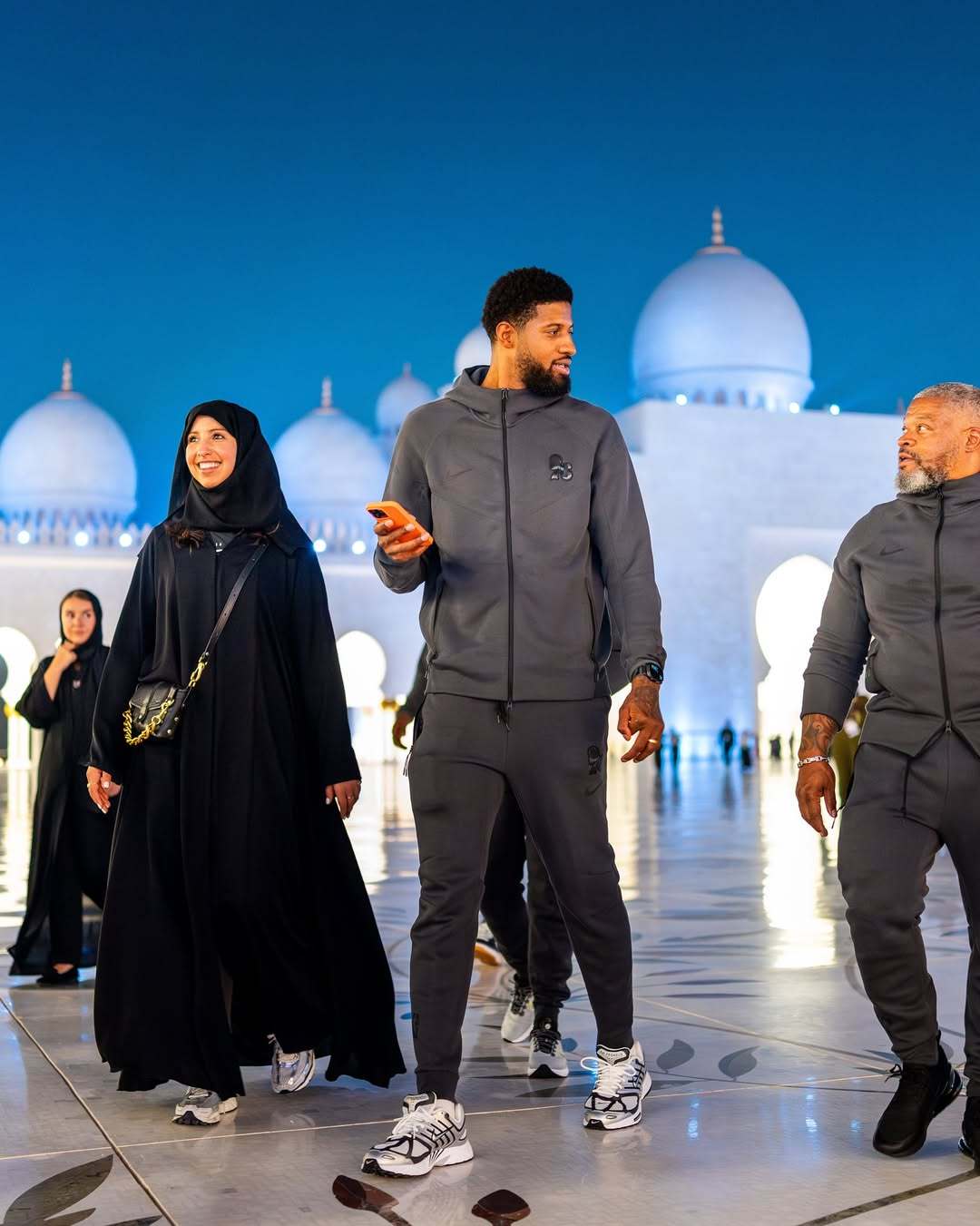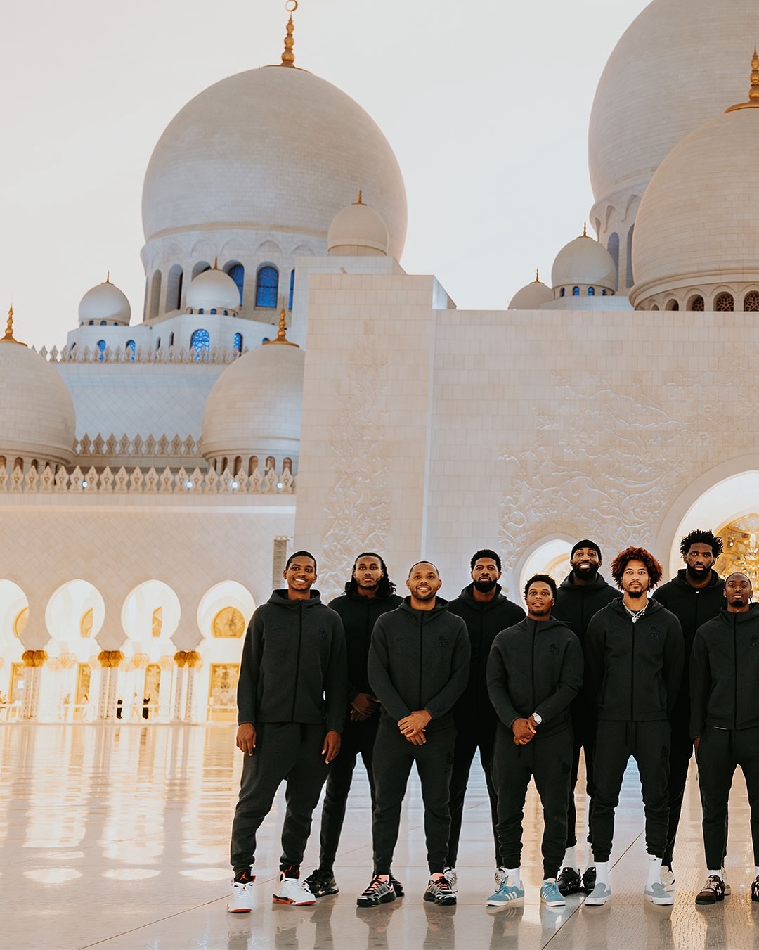 到此一游!分享昨日费城76人众将游览阿布扎比地标建筑“谢赫扎耶德大清真寺”时的现场酷图!(洛瑞还特意和麦凯恩视频通话)[爱你]费城76人我的观赛搭子PaulGeorge保罗乔治[超话]